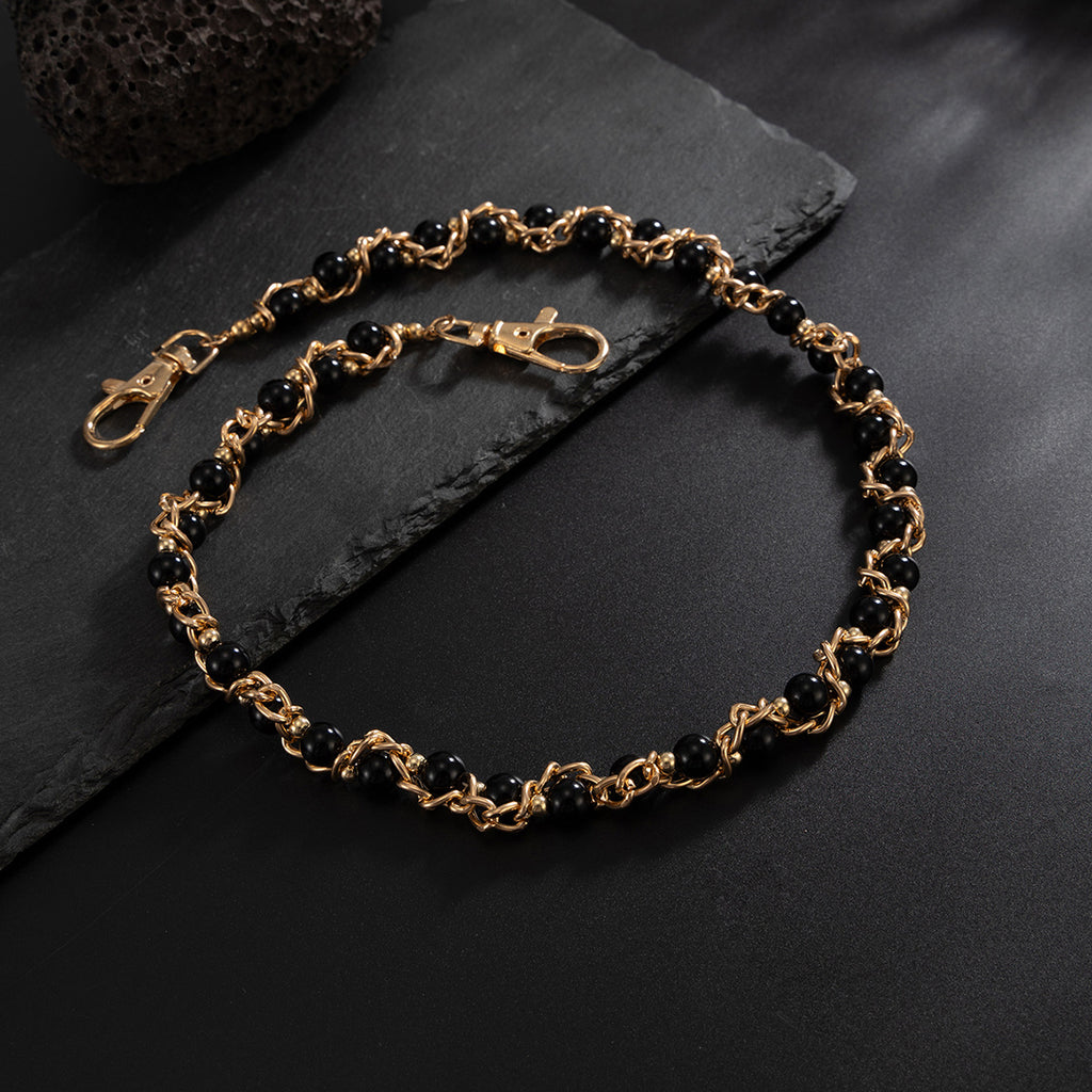 Introduce a bold and elegant contrast to your style with the Beaded Wallet Chain, a minimalist design that masterfully blends dark allure with metallic shine. This unique Ball Wallet Chain features a 53cm strand of rich black faux pearls, each individually wrapped in delicate gold or silver-toned alloy wire. The pearls are seamlessly linked by the same gleaming alloy chain, creating a sophisticated interplay of deep black and luminous metal—a visual statement that is both striking and versatile. This Pearl Pants Chain is designed for those who appreciate the harmony of organic texture and structural detail, offering a look that is equally at home in subculture scenes and refined settings.