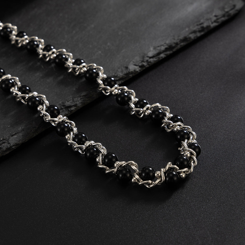 From a distance, the chain presents a sleek, continuous line, but a closer look reveals the intricate wire wrapping and the captivating contrast between the matte black pearls and the polished metal. The choice of gold or silver finish allows you to tailor the chain to your personal style—gold for warmth and luxury, silver for cool modernity. Lightweight and designed for all-day comfort, this chain transitions effortlessly from punk concerts and biker gatherings to smart-casual outings and everyday wear. It’s a piece that adds curated edge to any ensemble, proving that simplicity and sophistication can coexist.