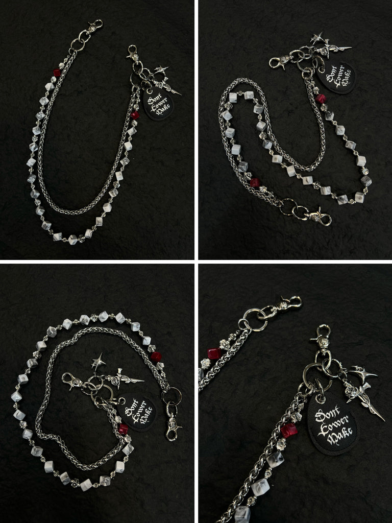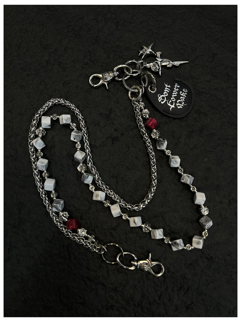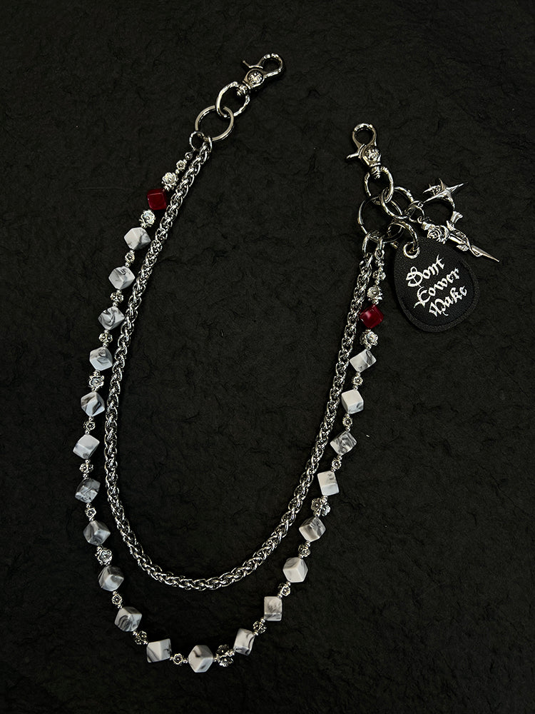 Design: Cross Double Wallet Chain Cube Beaded Pants Chain Double Pants Chain