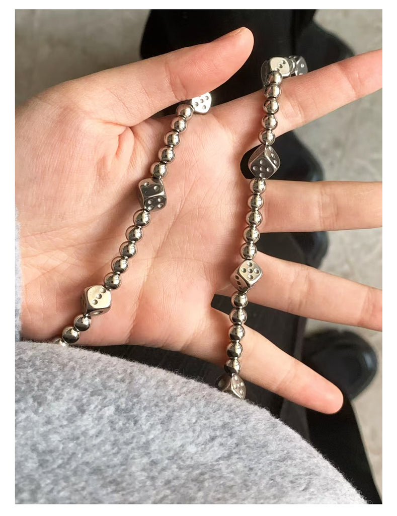 Style Tip: For a balanced look, pair this chain with neutral tones to let the metallic shine and dice details take center stage.