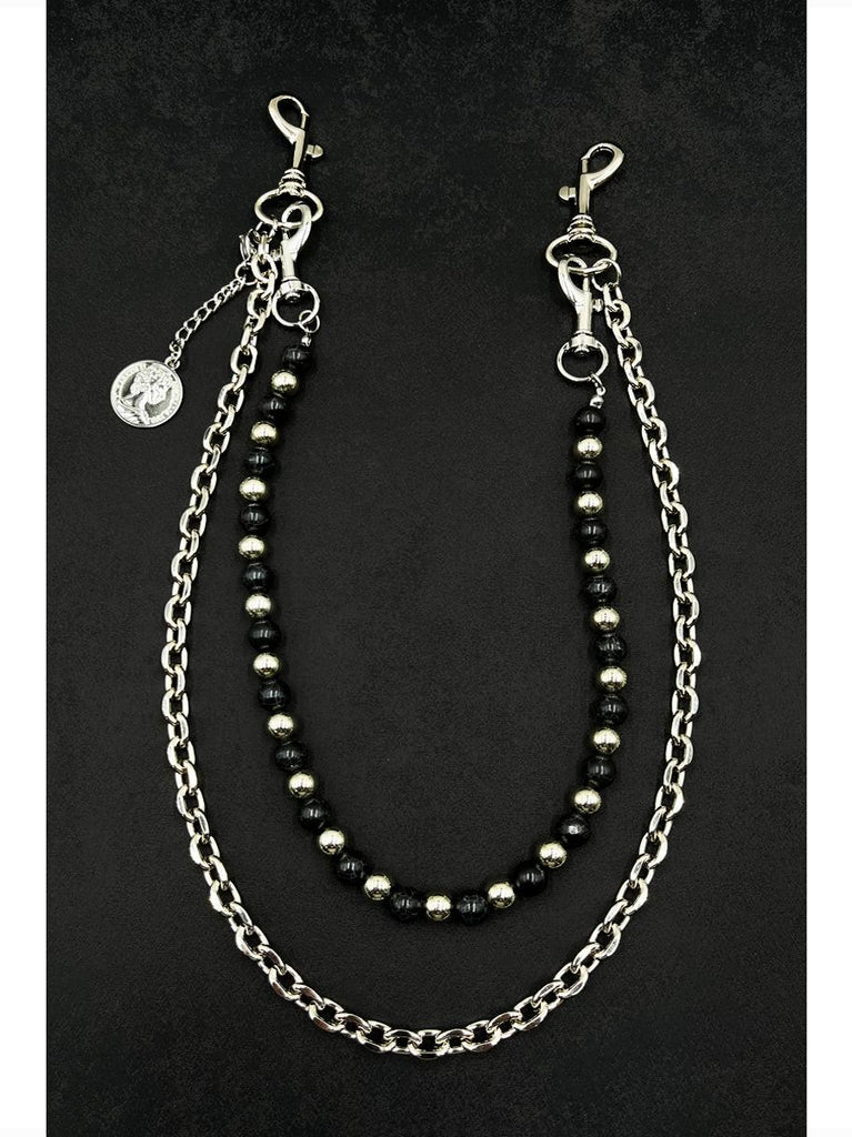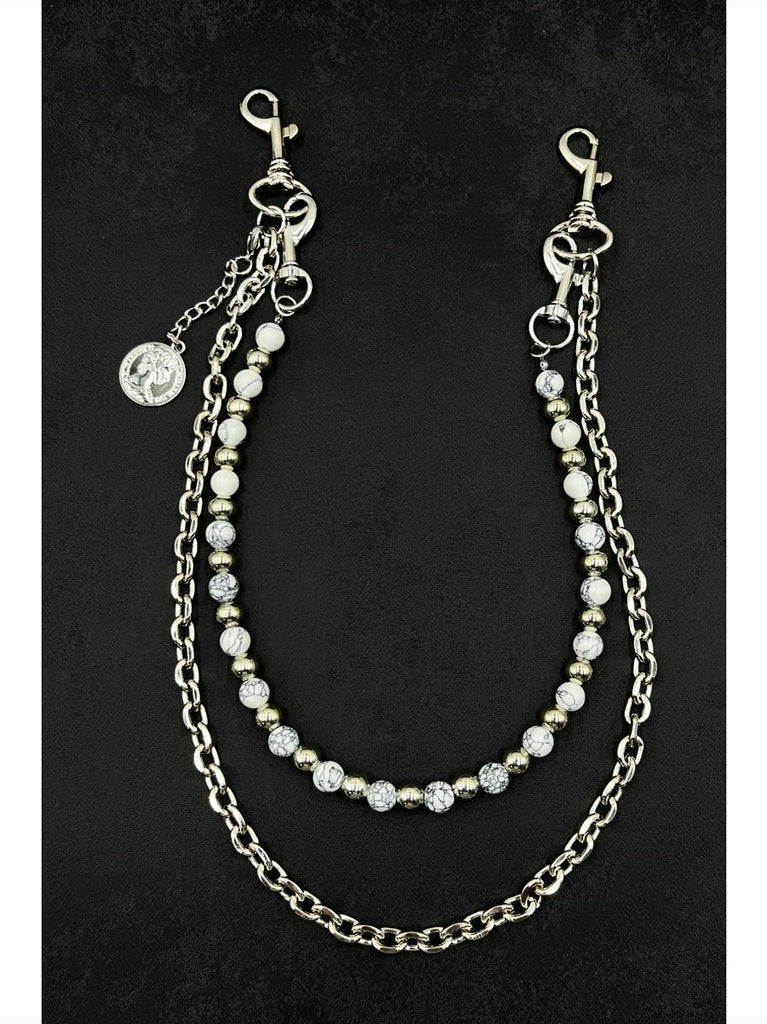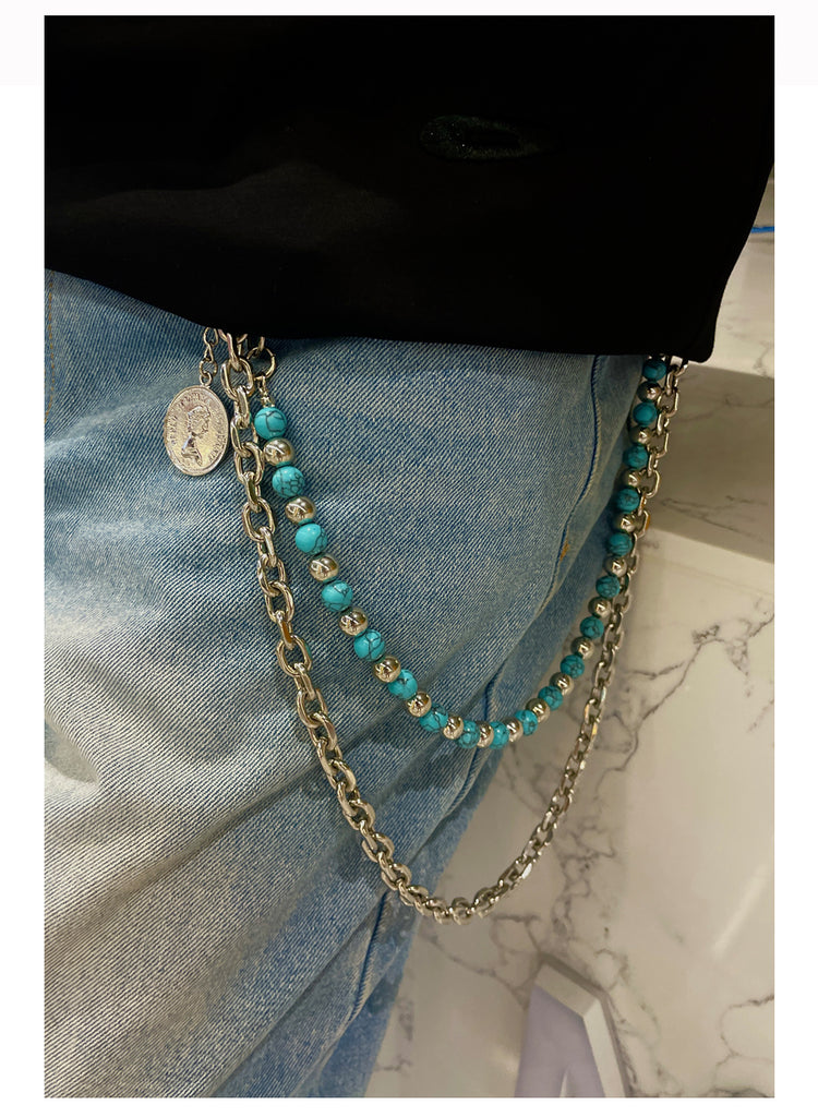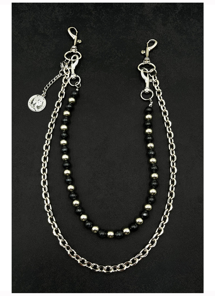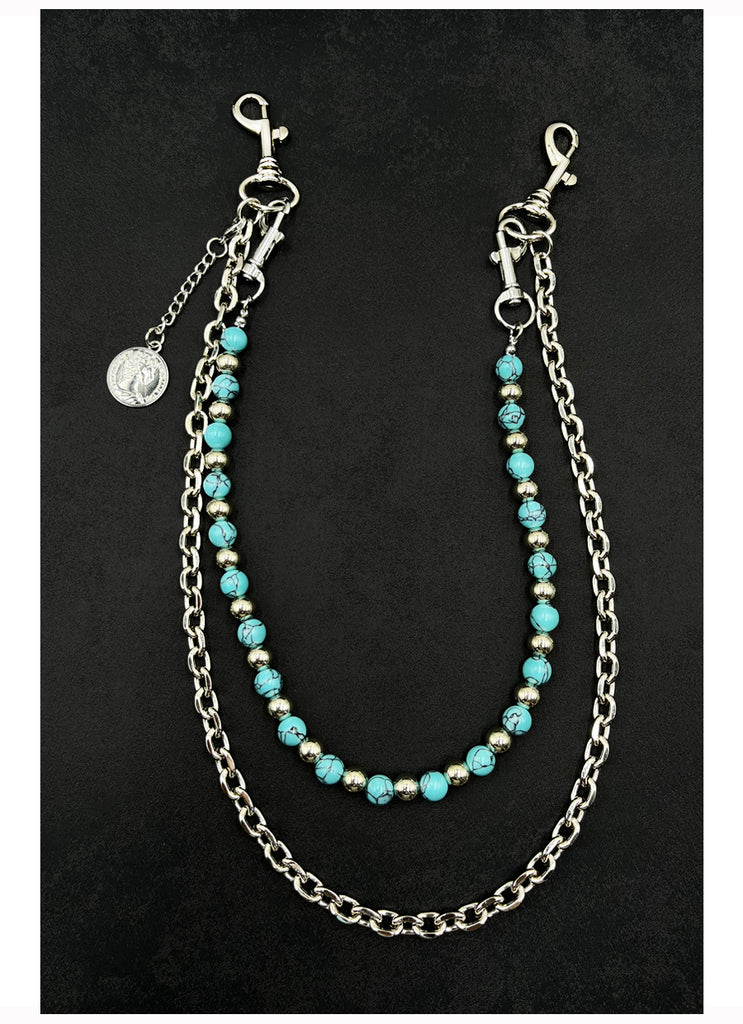 Introducing a bold and versatile fusion of industrial edge and fiery elegance with our Beaded Wallet Chain, a masterfully designed accessory that redefines modular styling. This innovative Double Wallet Chain features a substantial 71cm outer chain of rugged alloy links paired with a 50cm shorter strand of genuine red turquoise stones and metal beads. The true genius lies in the detachable design: the shorter chain is equipped with connectors at both ends, allowing it to be worn independently as a standalone piece or seamlessly combined with the longer chain to create a layered Ball Wallet Chain ensemble. Adding a final touch of personality, a distinctive circular coin charm hangs near the clasp, creating a look that’s both symbolic and street-smart.