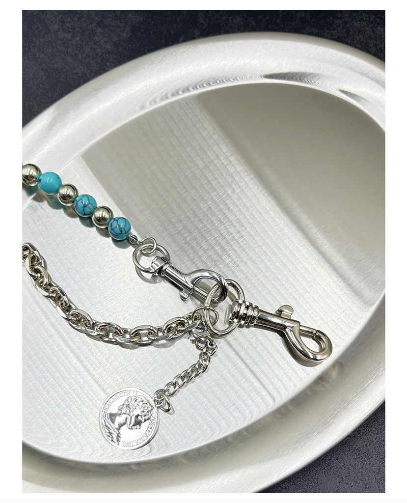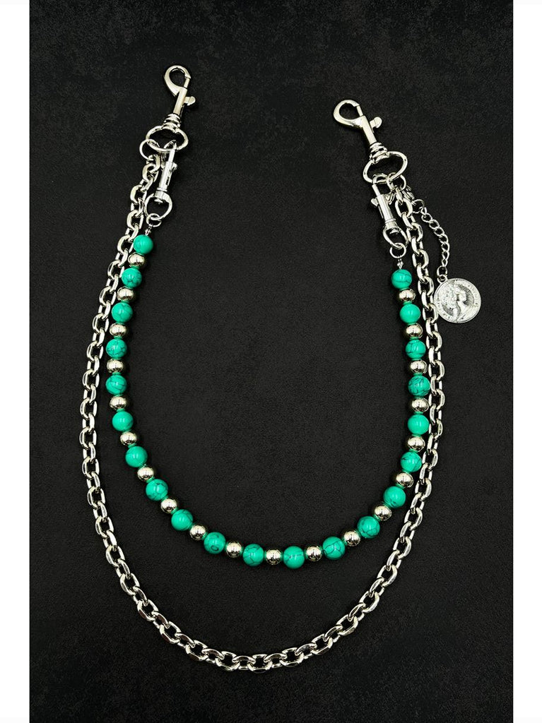 The Ball Wallet Chain is more than an accessory—it’s a style system. The rugged alloy chain stands strong on its own, while the red turquoise strand adds organic warmth and passionate color. Together with the coin charm, this Beaded Wallet Chain tells a story of exploration, creativity, and personal expression. Whether you wear it as a waist chain, a cross-body accent, or a layered necklace, it’s designed to inspire and adapt.