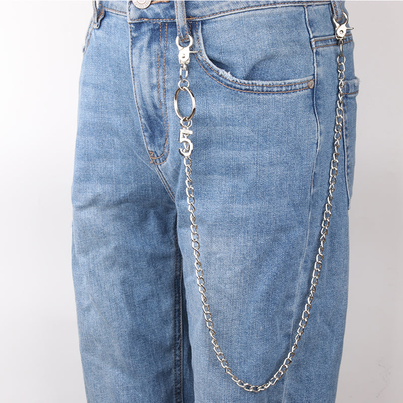 Silver Womens Long Wallet Chain With 5 Charm Jeans Chain Cute Beads Long Pants Chain For Women