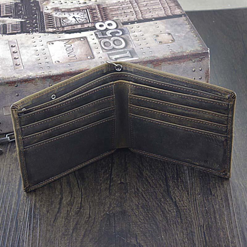 Design: Badass Dark Brown Leather Men's Bifold Small Biker Wallets Chain Wallet Wallets with chain For Men