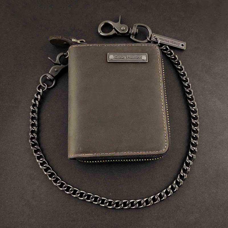 Design: BADASS DARK BROWN LEATHER MENS TRIFOLD SMALL BIKER WALLET CHAIN WALLET WALLET WITH CHAIN FOR MEN