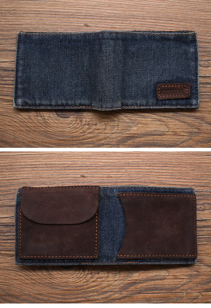 Style: Cool Denim Mens Leather billfold Wallet Bifold Card Wallets For Men
