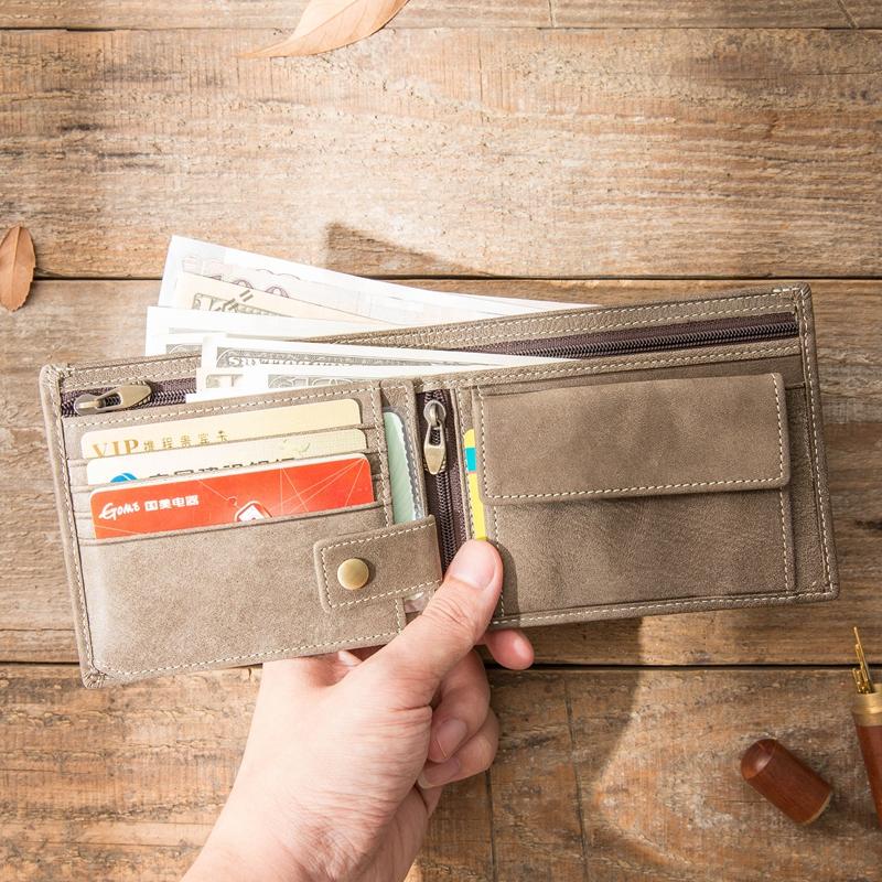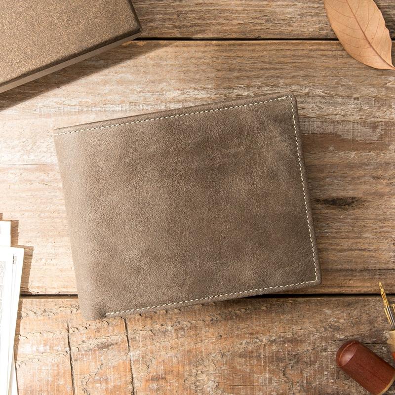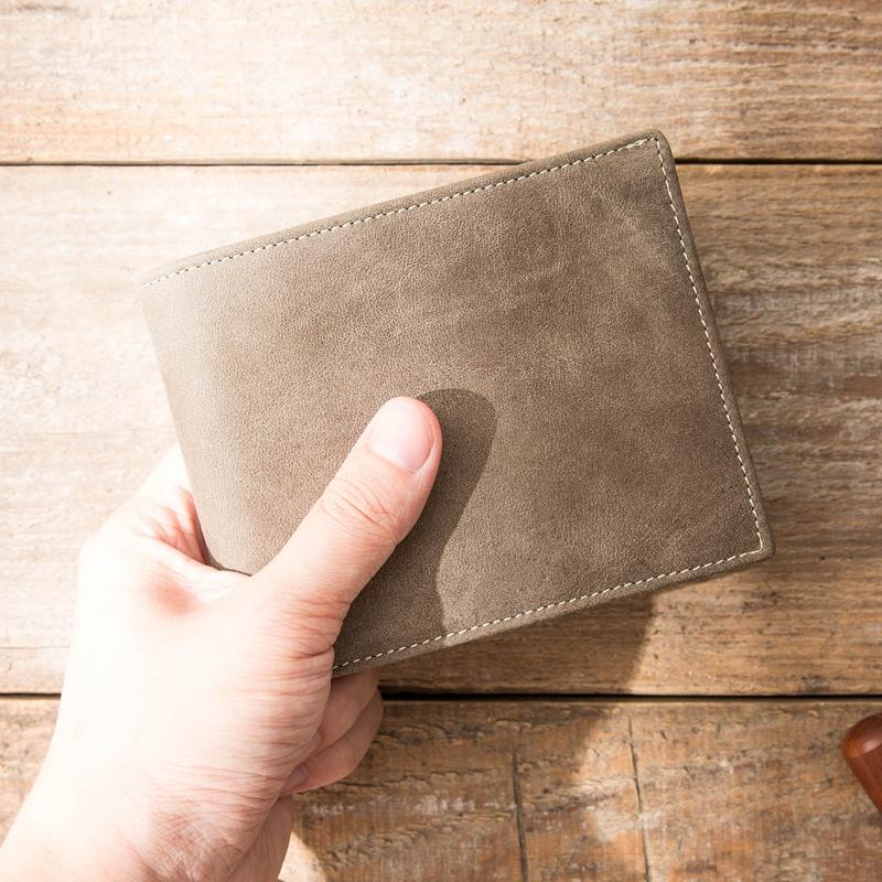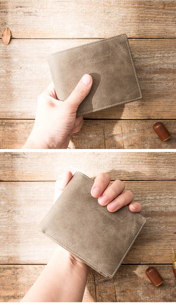 Style: Black Handmade Leather Mens Small Wallet Gray Card Wallet Front Pocket Wallet billfold Wallet for Men