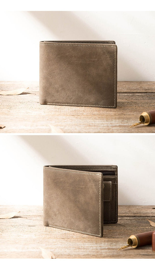 Design: Black Handmade Leather Mens Small Wallet Gray Card Wallet Front Pocket Wallet billfold Wallet for Men