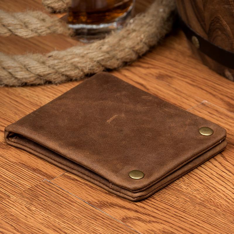 Design: Dark Brown Cool Leather Mens Card Holder Thin Front Pocket Wallet Black Slim Card Wallet for Men