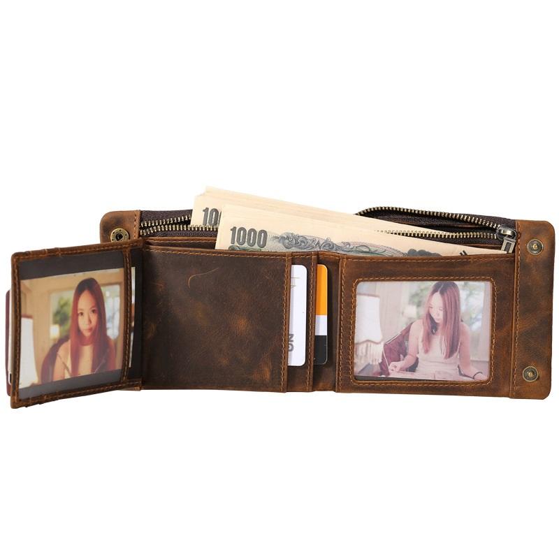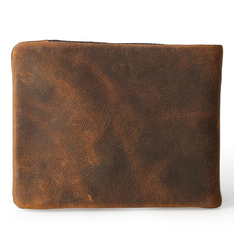 Design: Dark Brown Small MENS LEATHER Brown Trifold Wallet SLIM ZIPPER CLUTCH WRISTLET Brown Wallet FOR MEN