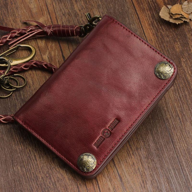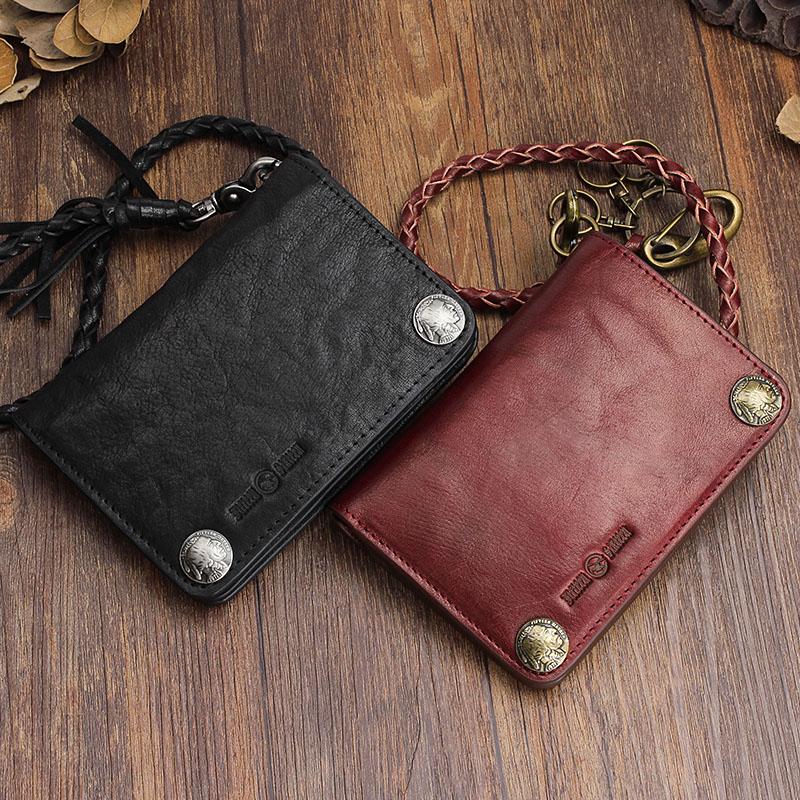 Design: Genuine Leather Mens Chain Biker Wallet Cool Leather Wallet Small Wallets for Men