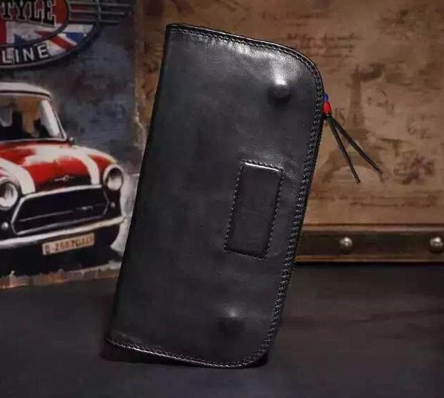 Style: Genuine Leather Mens Cool billfold Long Leather Wallet Men Small Wallets Bifold for Men