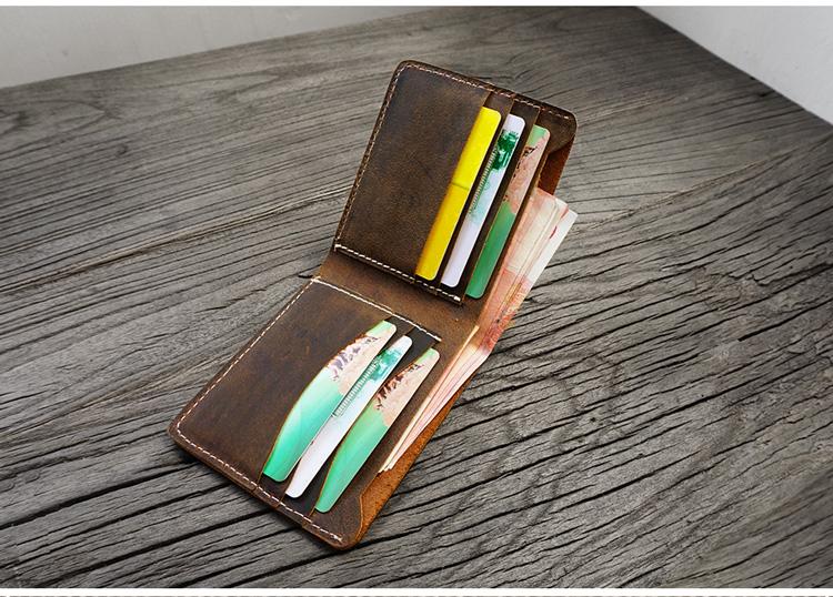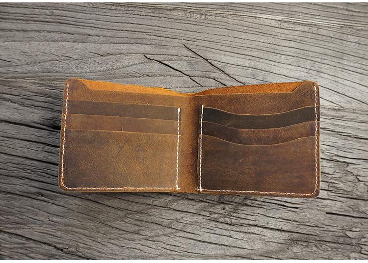 Style: Handmade Brown Leather Mens Billfold Wallets Slim Brown Bifold Small Wallet for Men
