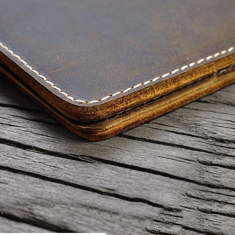 Design: Handmade Brown Leather Mens Billfold Wallets Slim Brown Bifold Small Wallet for Men