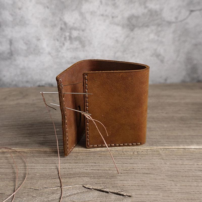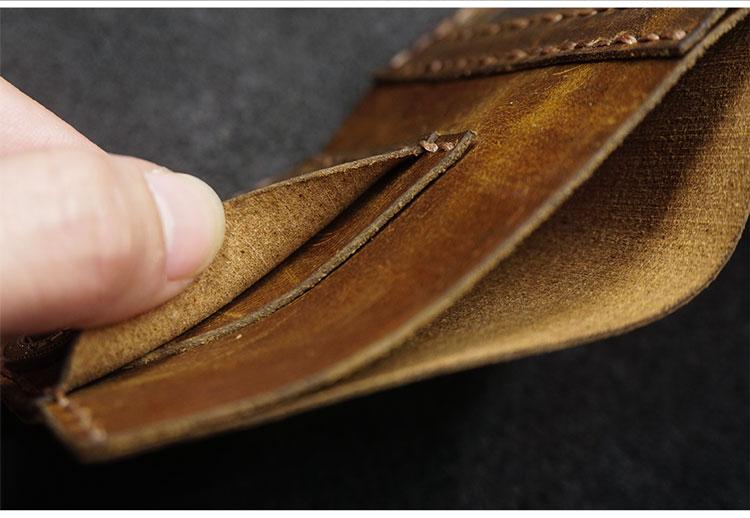 Design: Handmade Brown Leather Mens Trifold Billfold Wallets With Front Pocket Wallet for Men