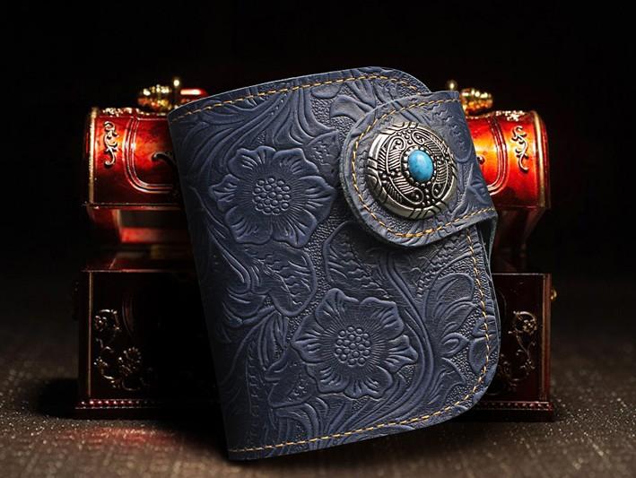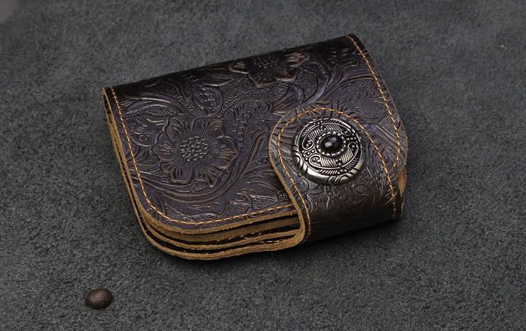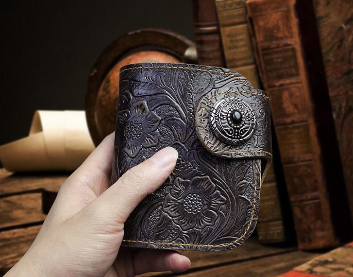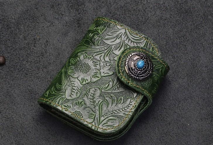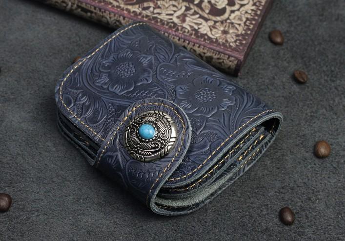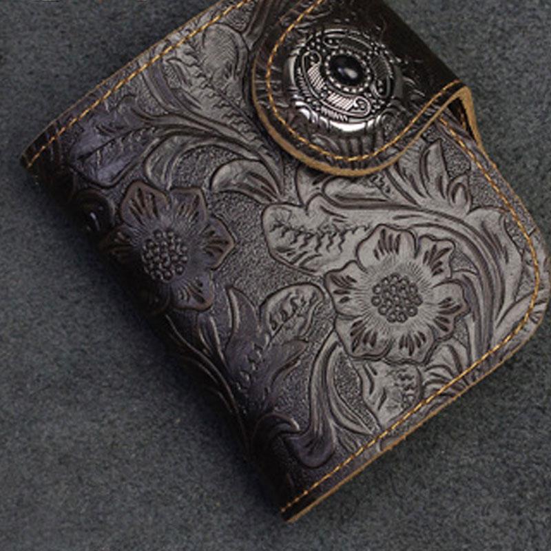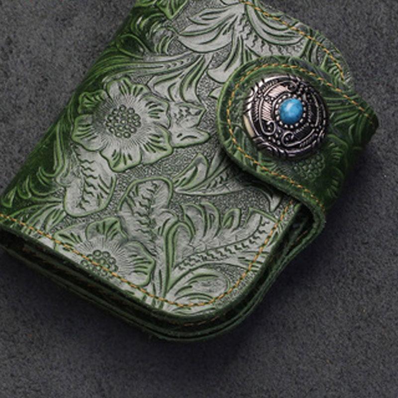 Design: Handmade Leather Floral Mens Cool Biker Wallet Leather Wallet Men billfold Wallets Bifold for Men