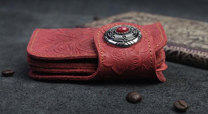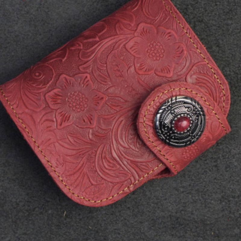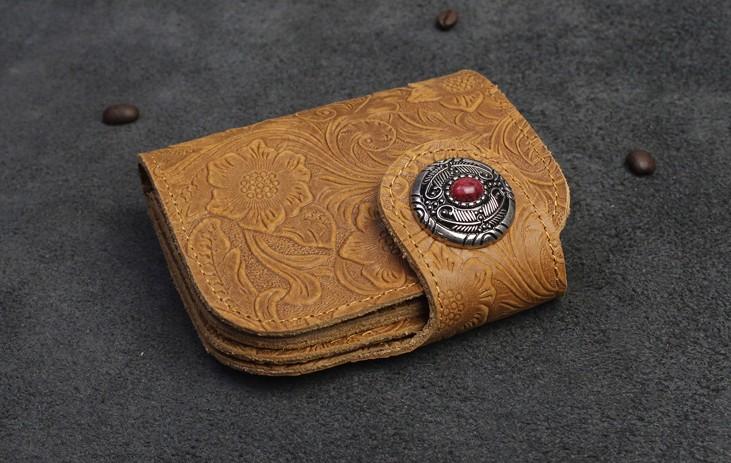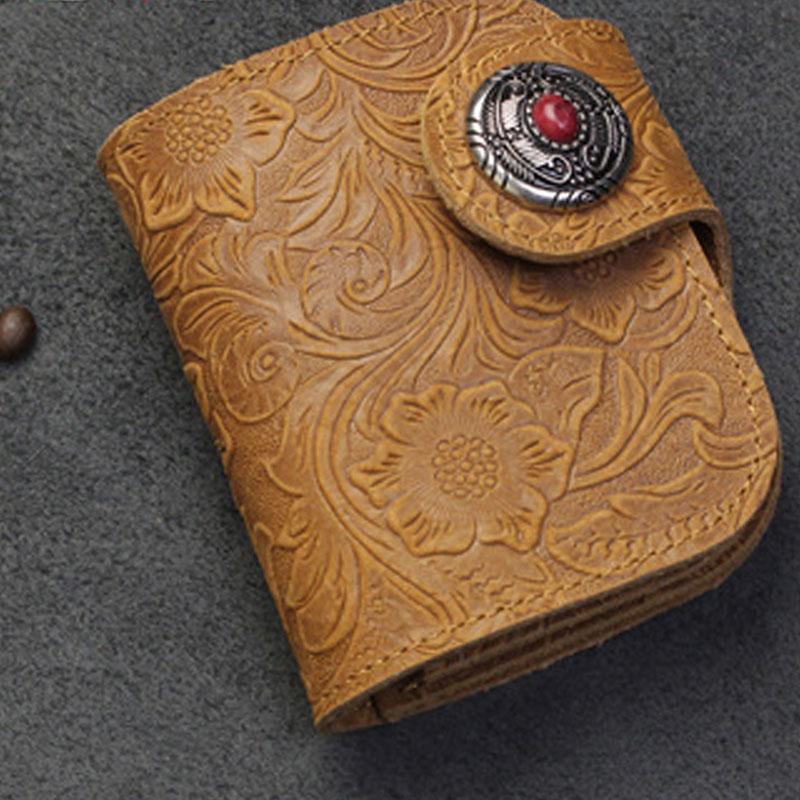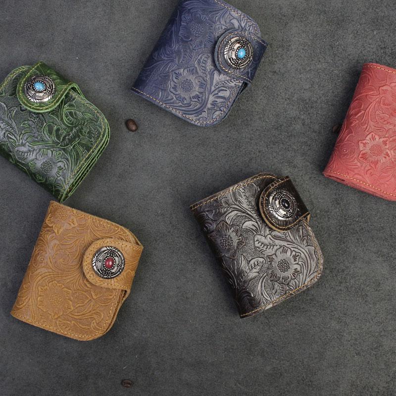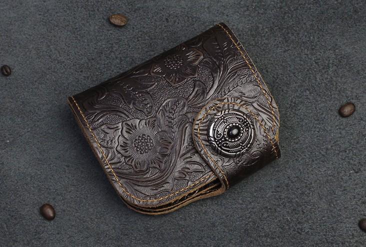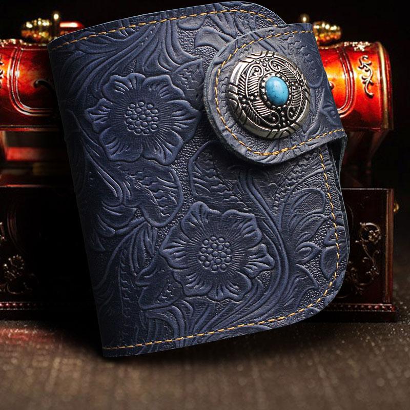 Design: Handmade Leather Floral Mens Cool Biker Wallet Leather Wallet Men billfold Wallets Bifold for Men
