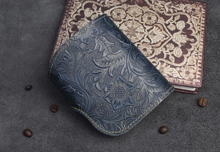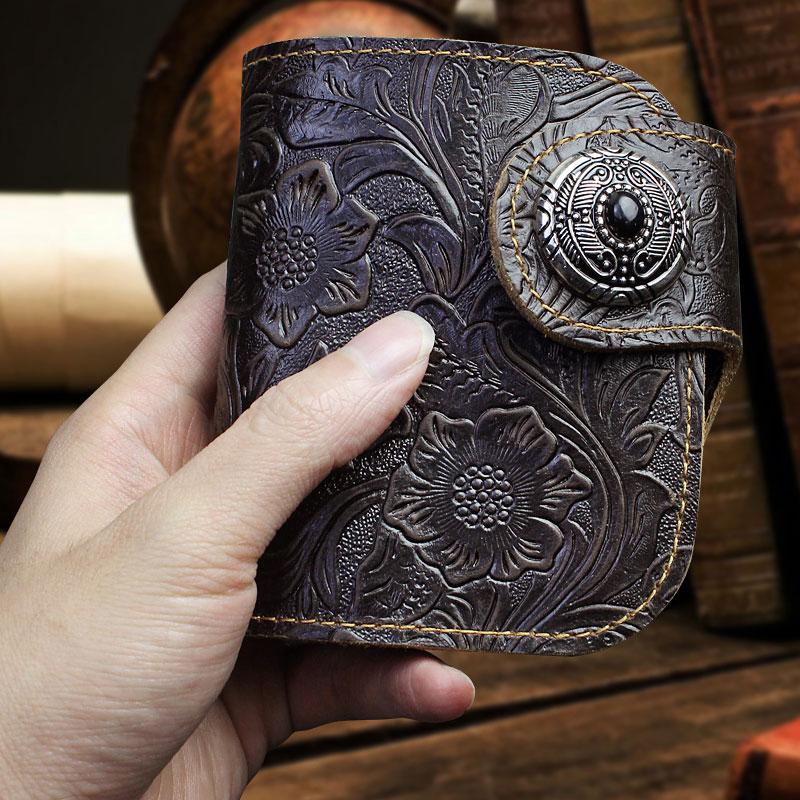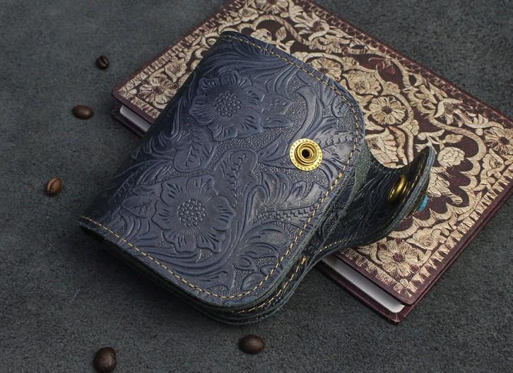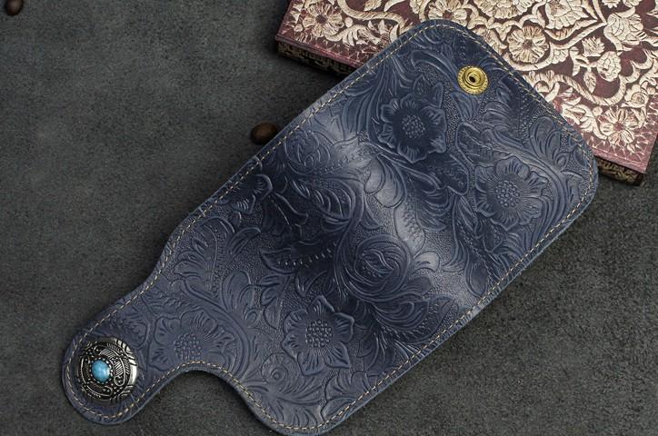Style: Handmade Leather Floral Mens Cool Biker Wallet Leather Wallet Men billfold Wallets Bifold for Men