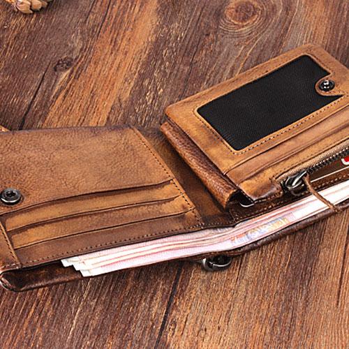 Design: Handmade Leather Mens Chain Biker Wallet Cool Leather Wallet Wrist Wallets for Men