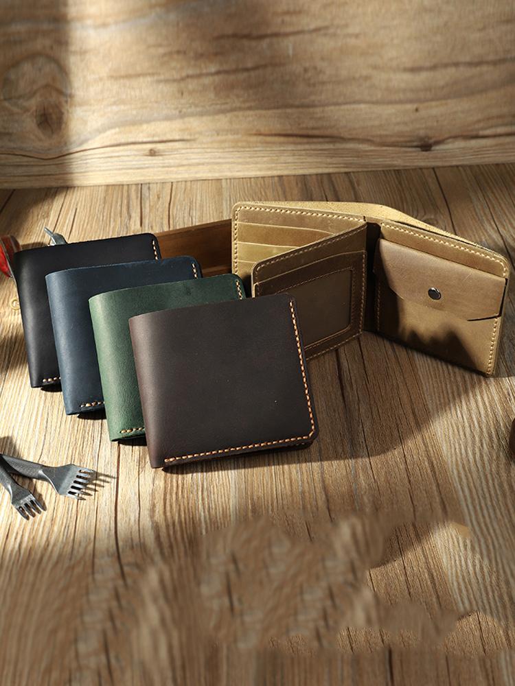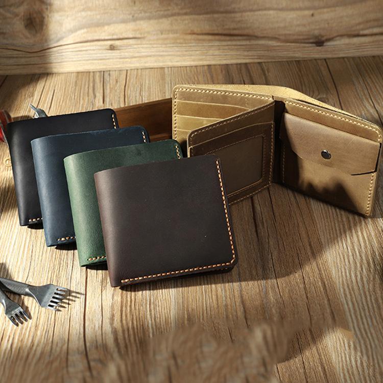 Style: Handmade Leather Mens Trifold Billfold Wallet Personalize Trifold Small Wallets for Men