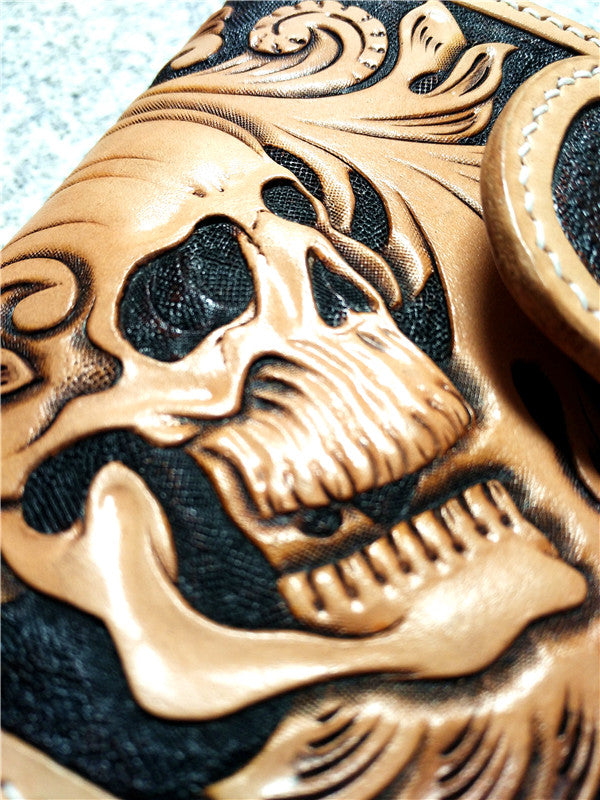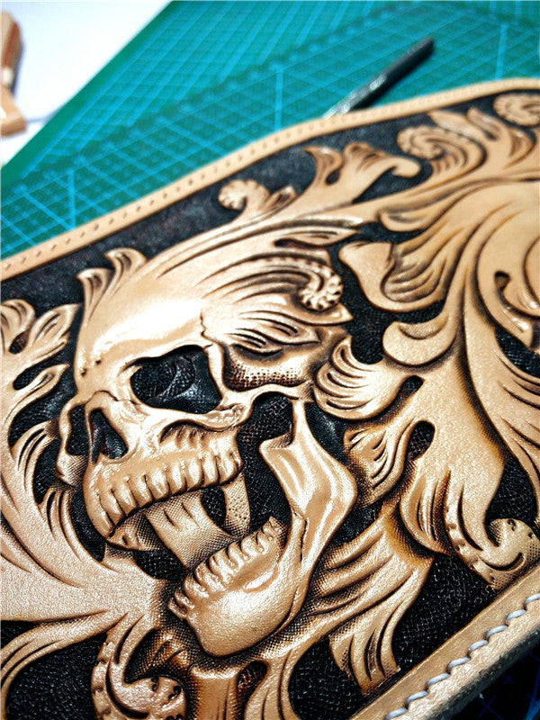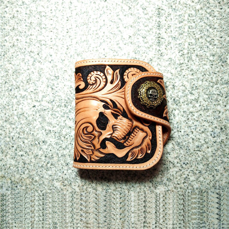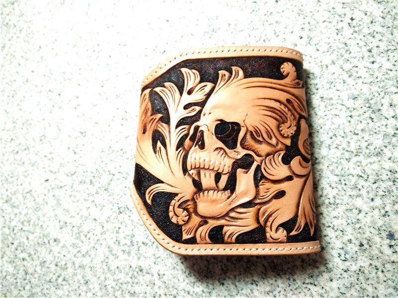 Style: Handmade Leather Wallet Skull Wallet Biker Wallet Leather Biker Wallets Leather Wallet Handmade