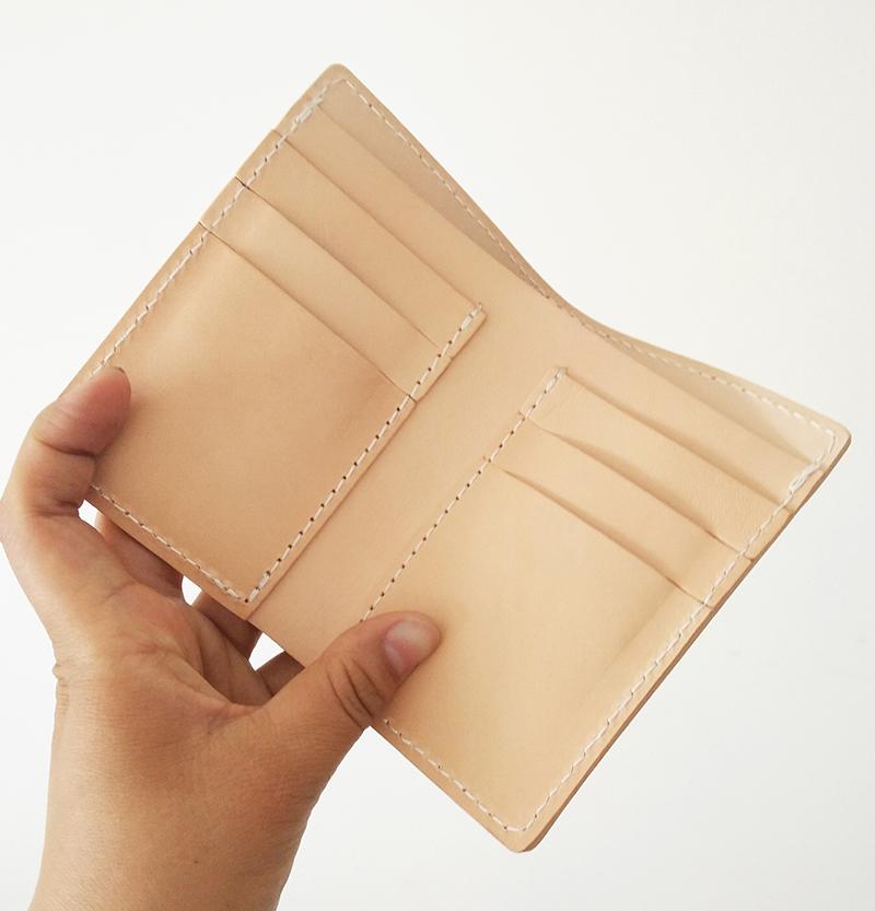 Design: Handmade Simple Mens Leather Beige billfold Small Wallet Cool Small Slim Bifold Wallets for Men