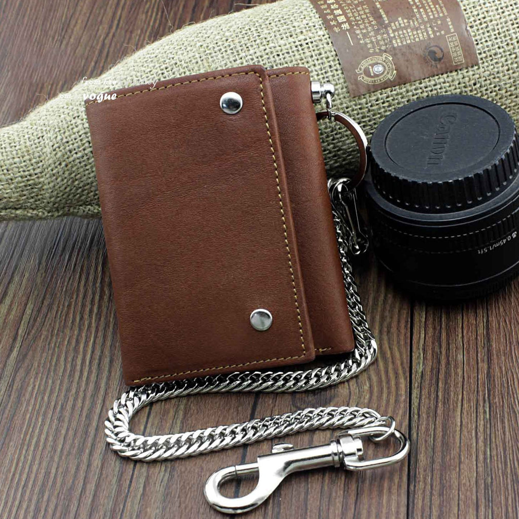 Style: Badass Brown Leather Men's Trifold Small Biker Wallet Chain Wallet Wallet with chain For Men