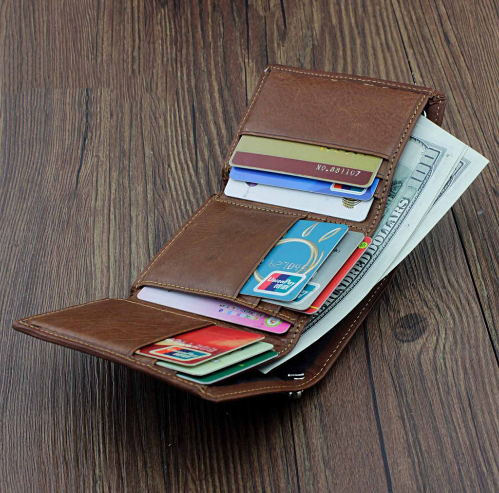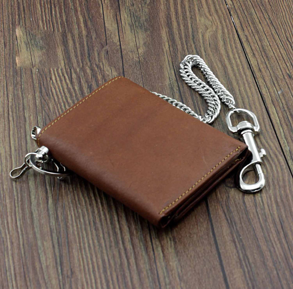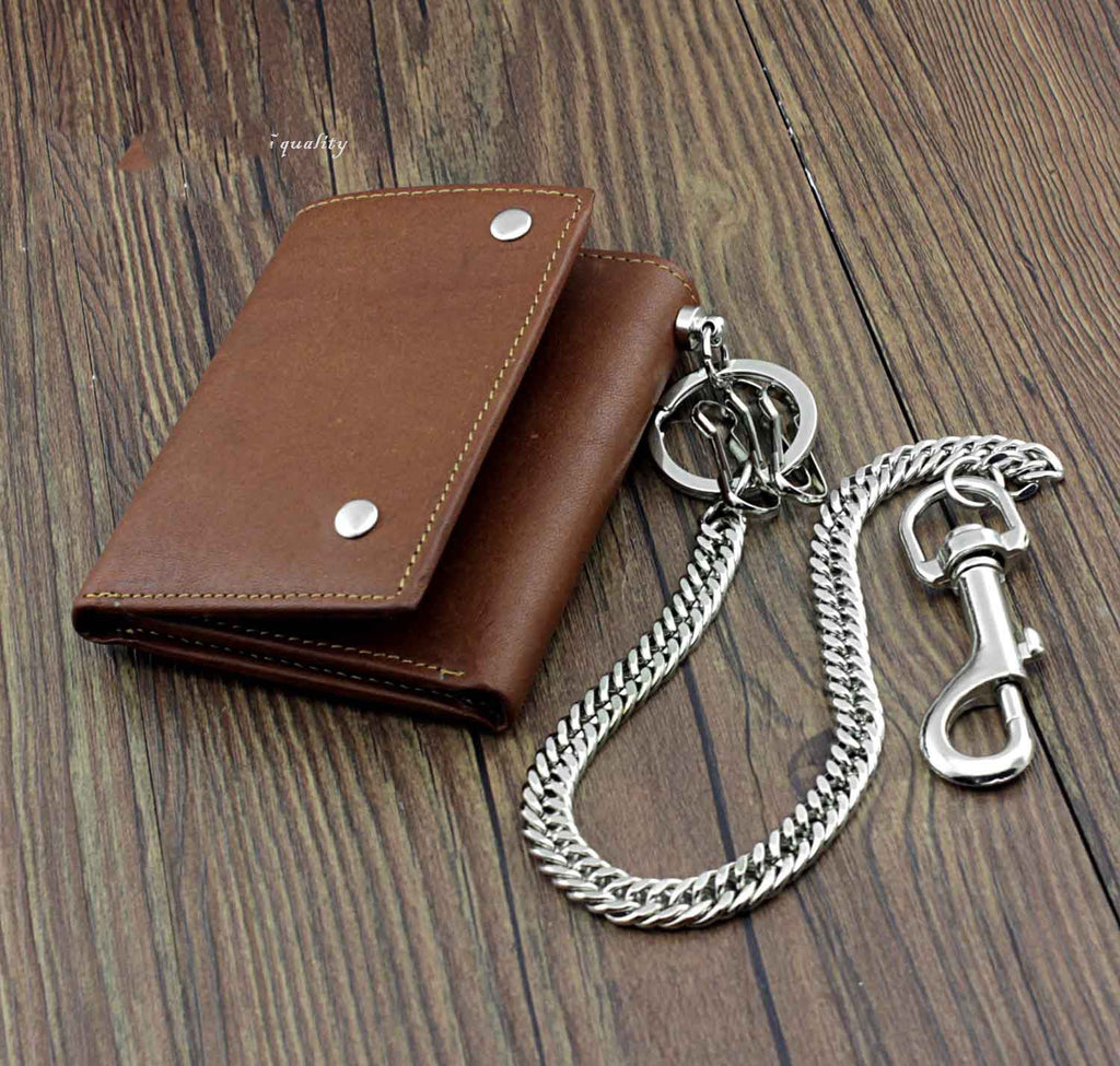 Design: Badass Brown Leather Men's Trifold Small Biker Wallet Chain Wallet Wallet with chain For Men