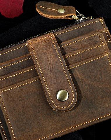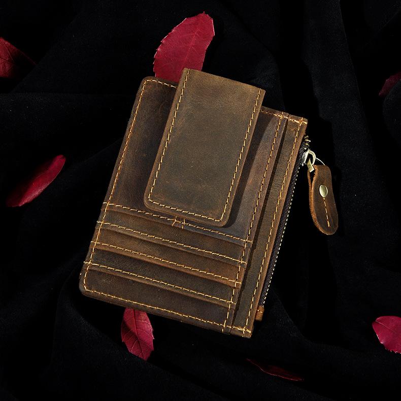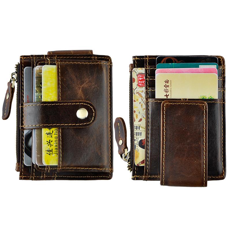 Leather Mens Slim Small Wallet Cool Front Pocket Wallet Money Clip for Men