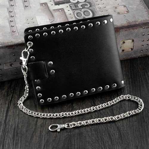 Design: Punk Black Leather Men's Small Biker Wallet Chain Wallet Golden Star Short Wallet with Chain For Men