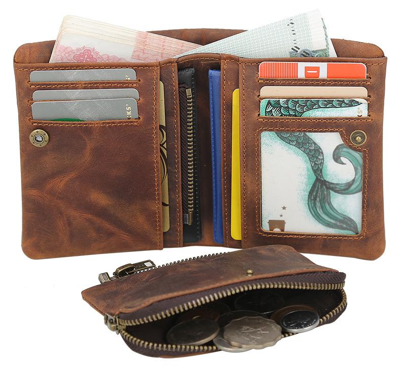 Design: Vintage Leather Mens Bifold Small Wallet billfold Wallet Within Detachable Coin Holder for Men