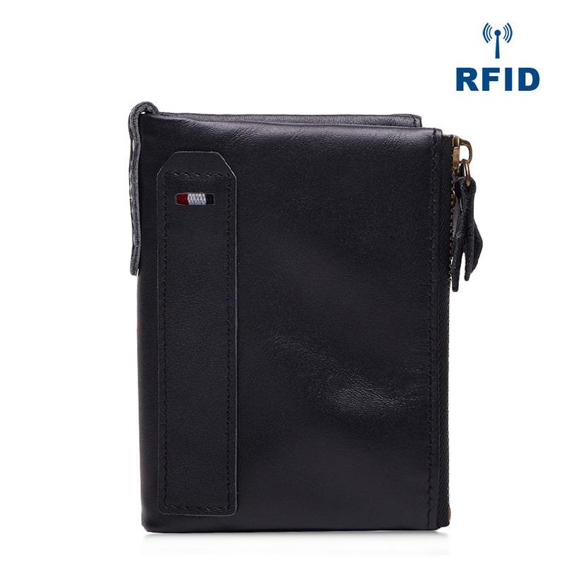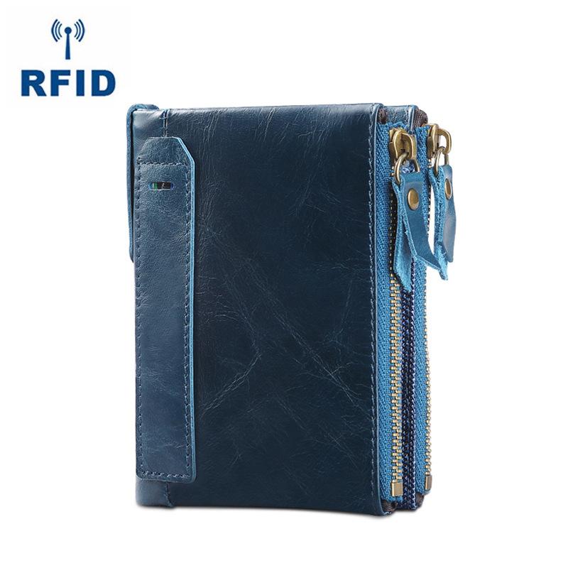RFID Brown Leather Men's Small Blue Bifold Business Wallet Black Slim billfold Wallet Coin Purse For Men
