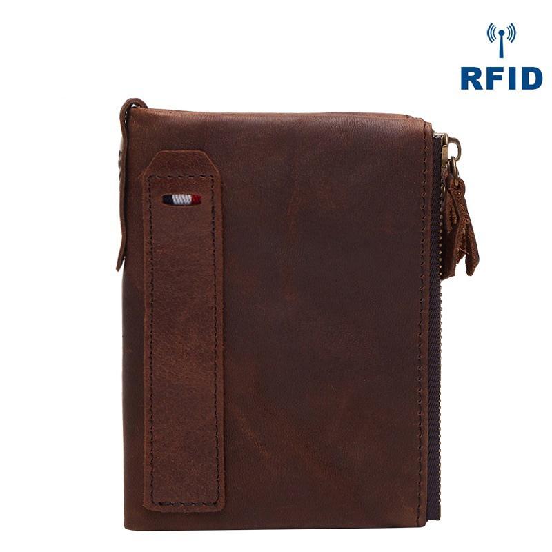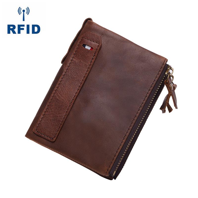 Style: RFID Brown Leather Men's Small Blue Bifold Business Wallet Black Slim billfold Wallet Coin Purse For Men