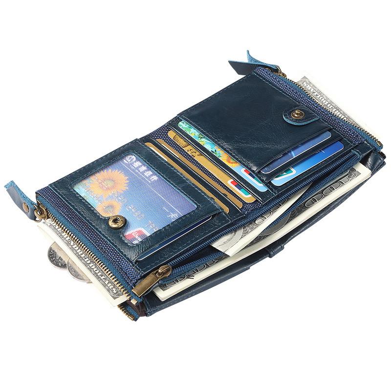 Design: RFID Brown Leather Men's Small Blue Bifold Business Wallet Black Slim billfold Wallet Coin Purse For Men