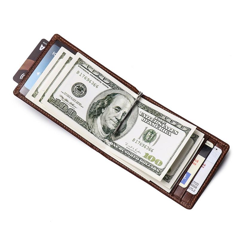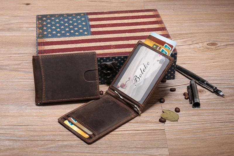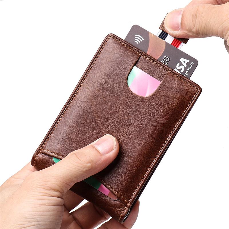 Style: RFID Brown Leather Men's Small Wallet billfold Wallet Black Front Pocket Wallet For Men