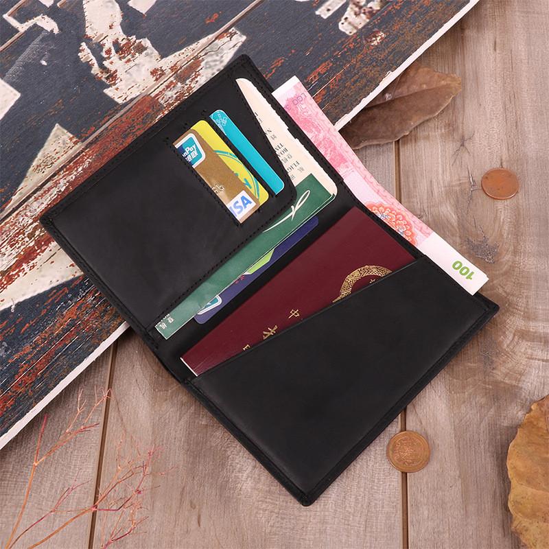 Design: Slim Black RFID Men's Leather Bifold Dark Brown Passport Wallet Travel Wallet Ticket Wallet For Men