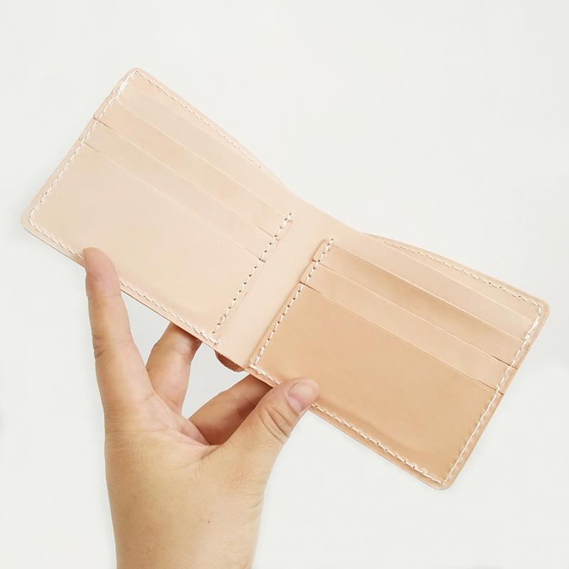 Design: Vintage Handmade Mens Leather Light Beige Chain Wallet Cool Small Bifold Wallets with Zippers