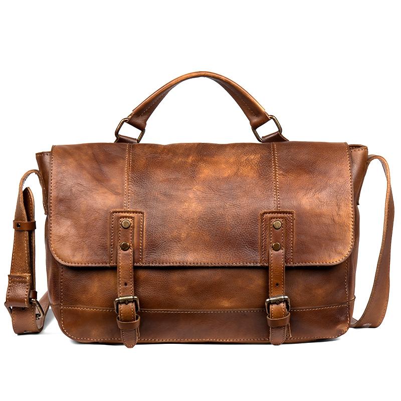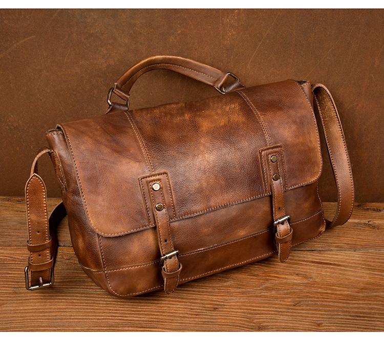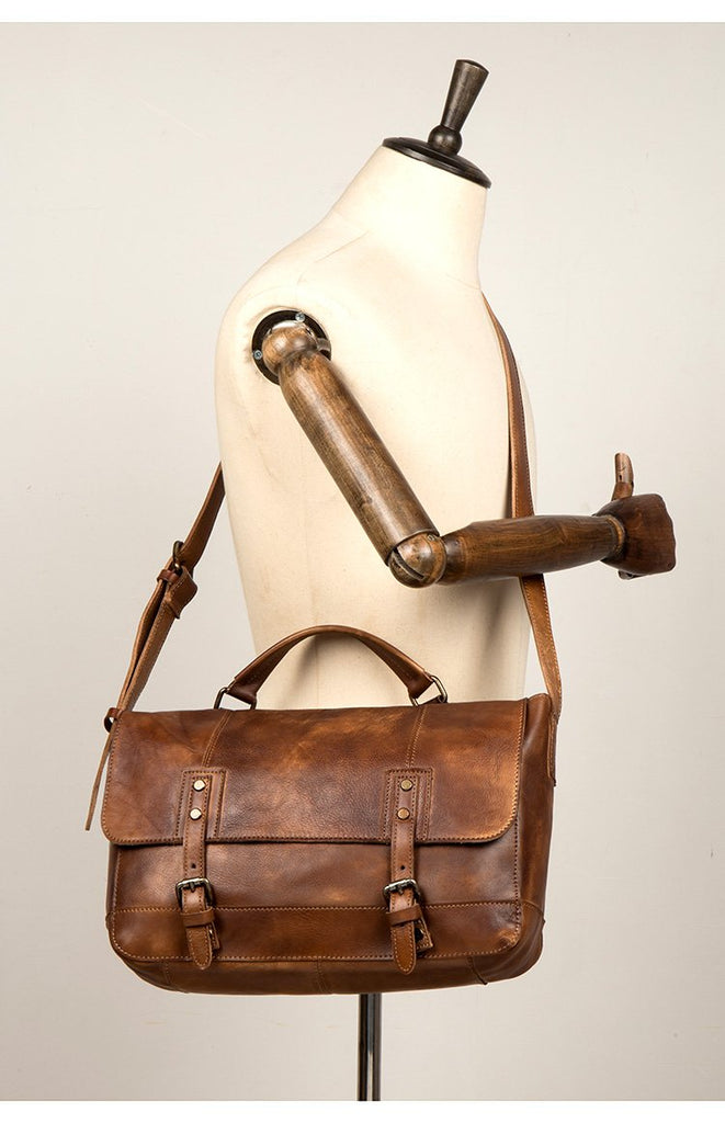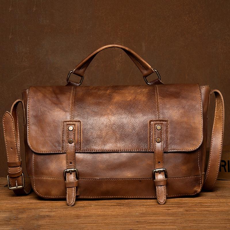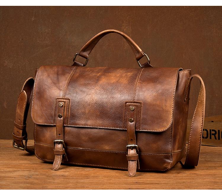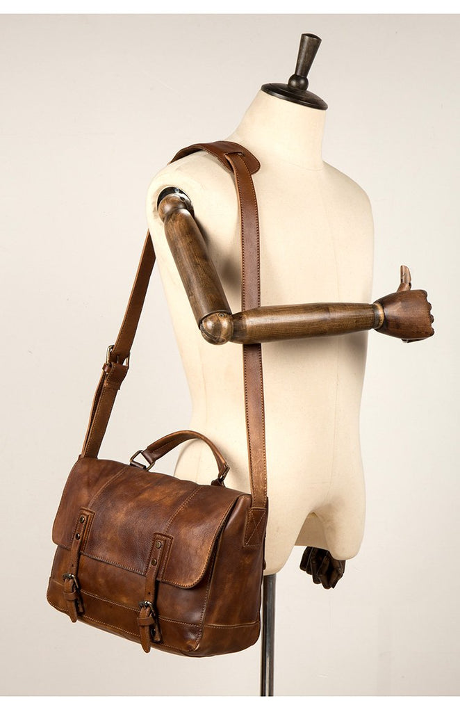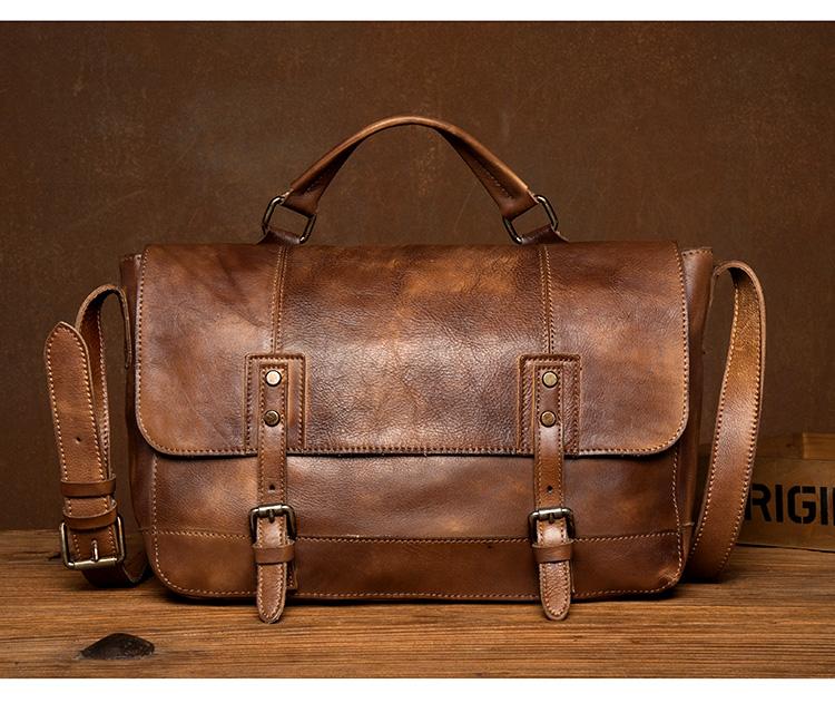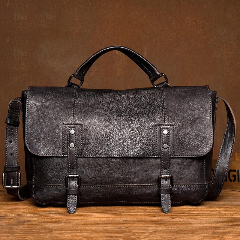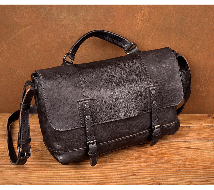 Style: Black Brown Leather Mens 13 inches Briefcase Laptop Bag Business Bag Work Bag for Men