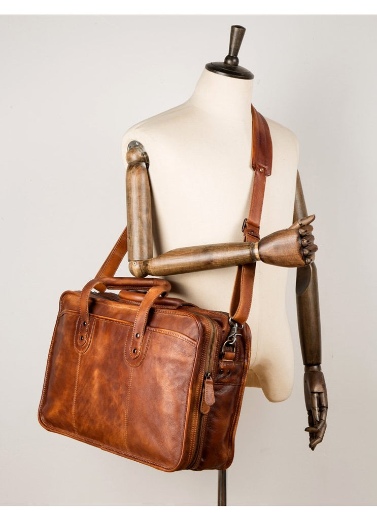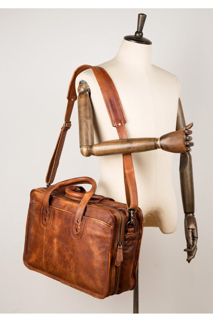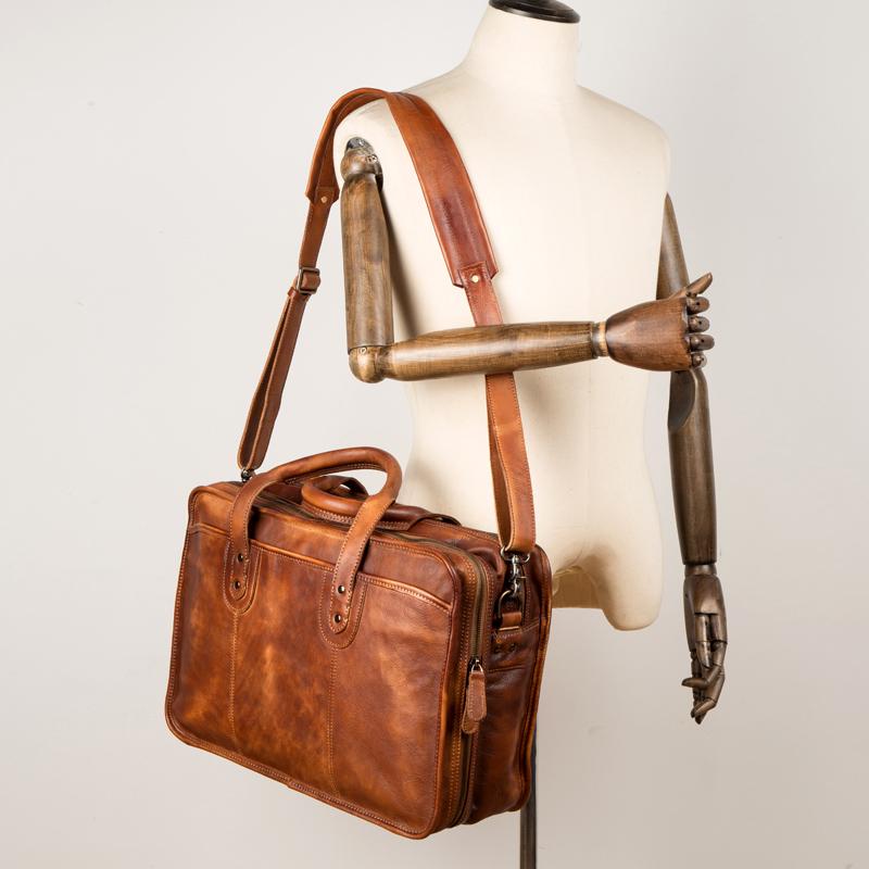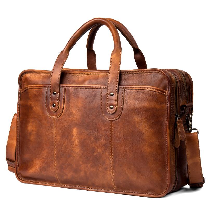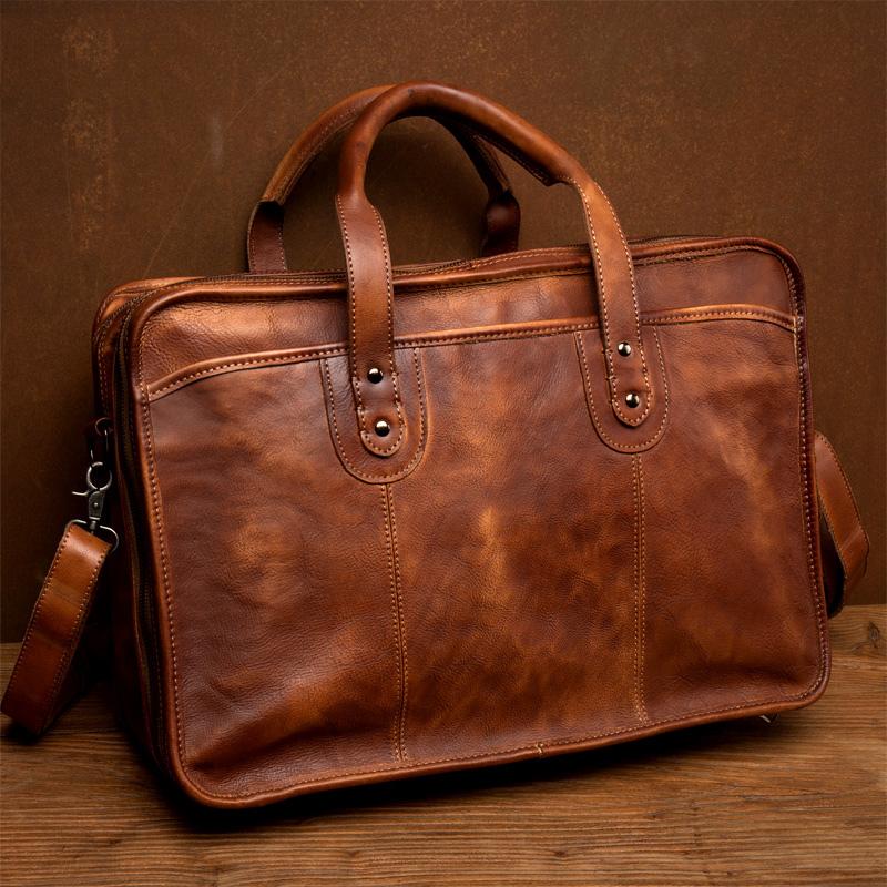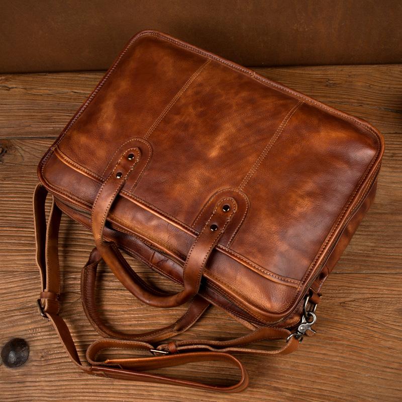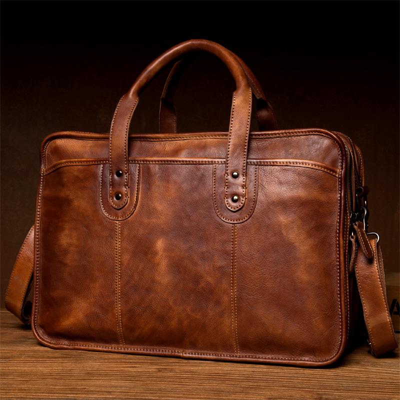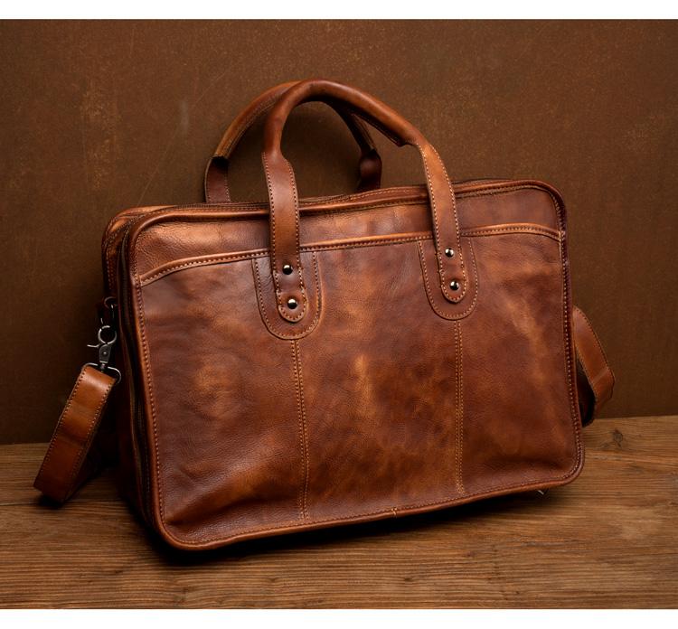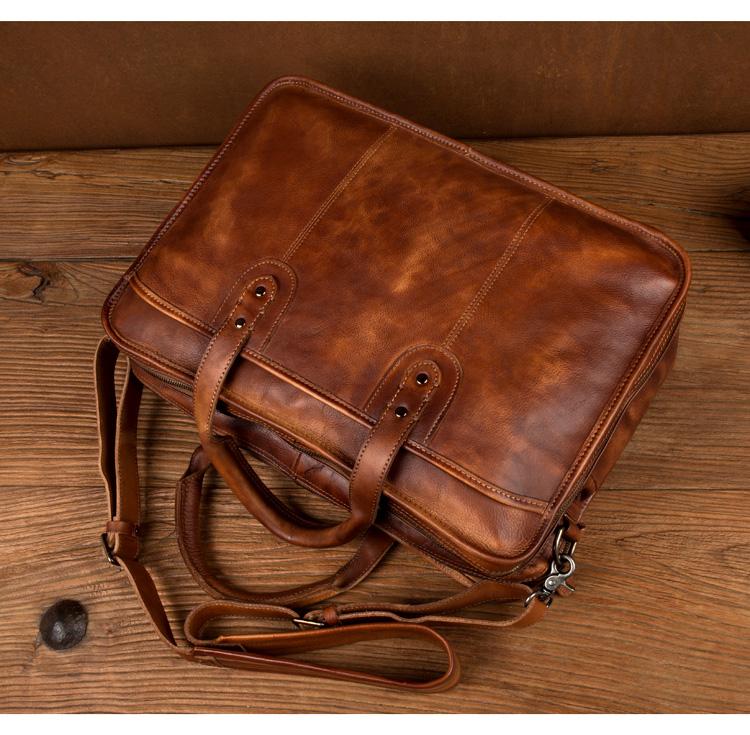 Style: Black Brown Leather Mens 15 inches Briefcase Laptop Bag Business Bags Work Bag for Men