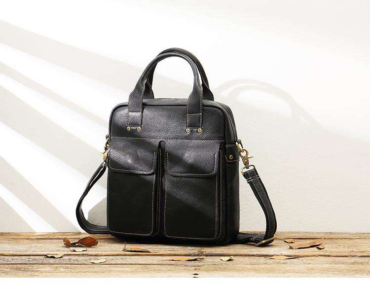 Black Casual Leather Mens 10 inches Vertical Briefcase Side Bags Postman Bag Black Work Bag Courier Bag for Men