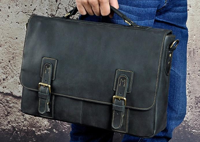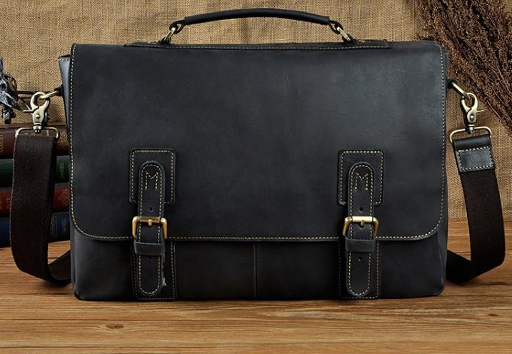Black Coffee Leather Mens Briefcase Laptop Bag Business Bag Work Bag for Men