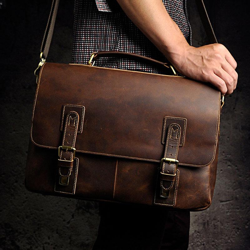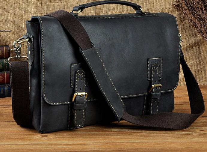 Design: Black Coffee Leather Mens Briefcase Laptop Bag Business Bag Work Bag for Men