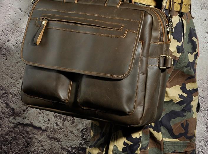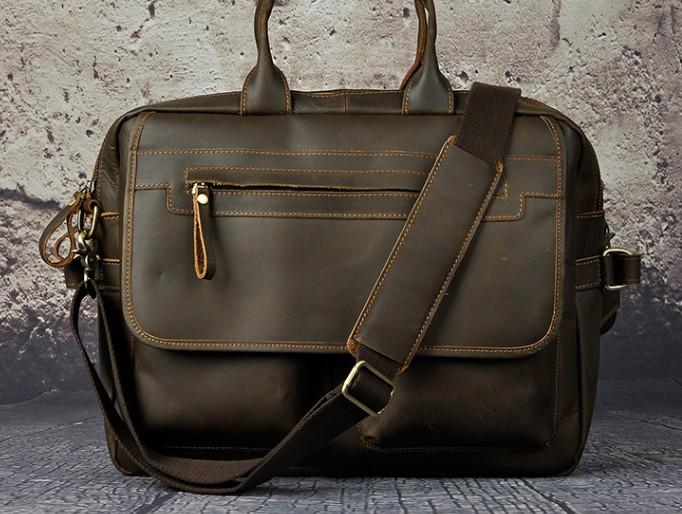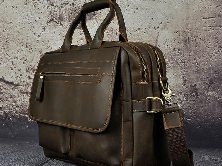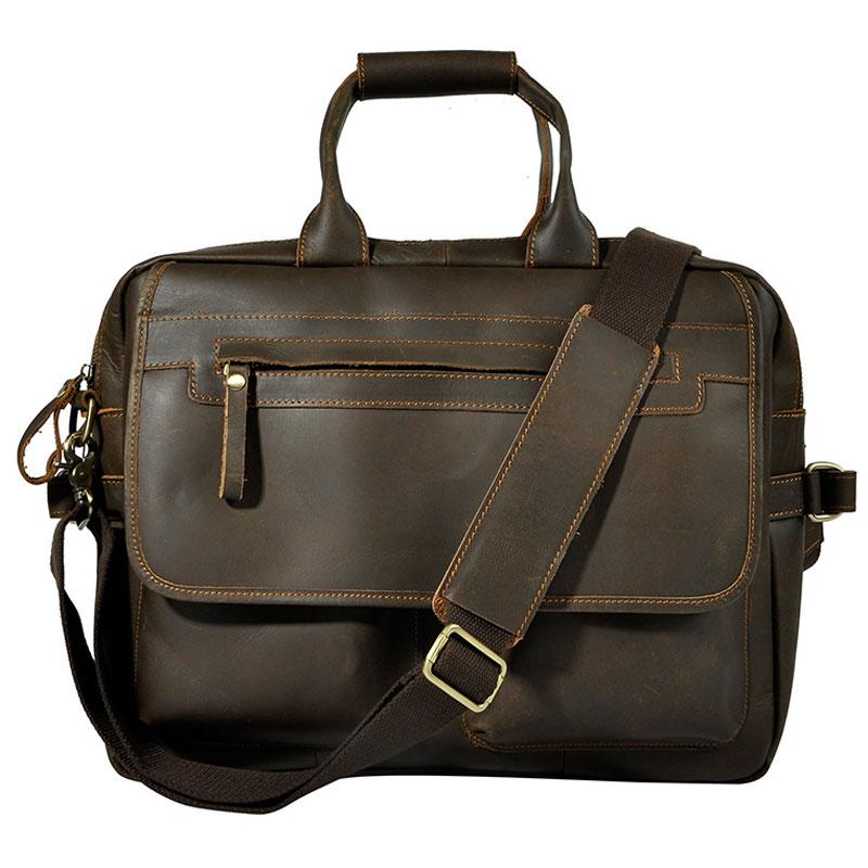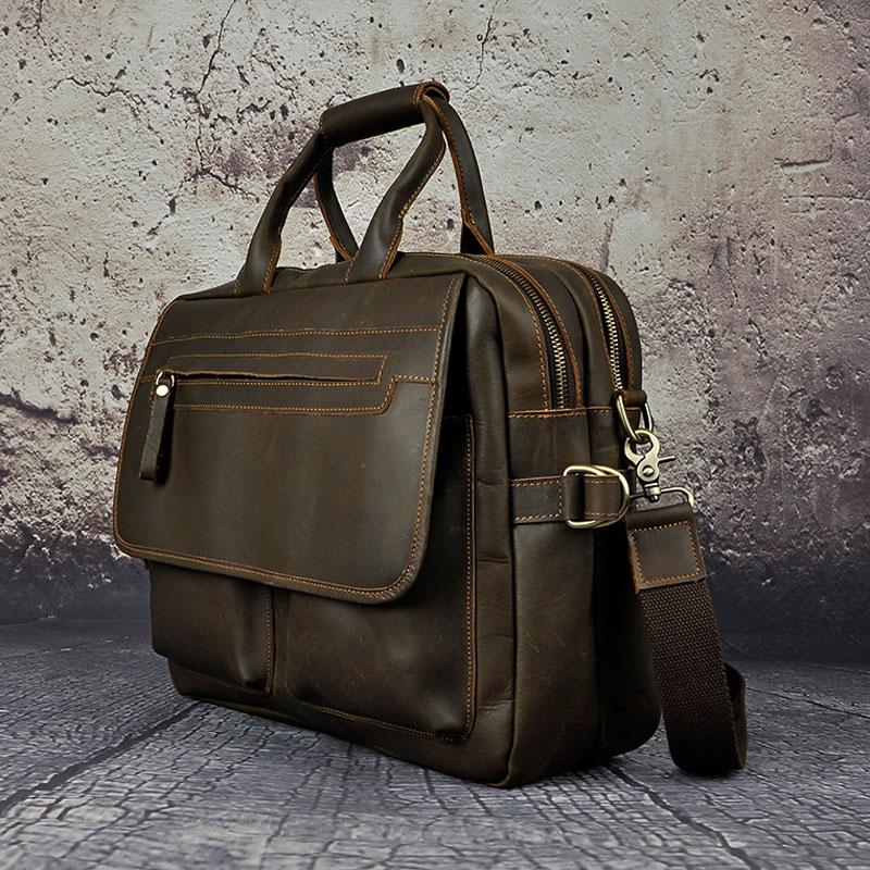 Design: Black Coffee Leather Mens Briefcase Laptop Bag Business Bag Work Bag for Men