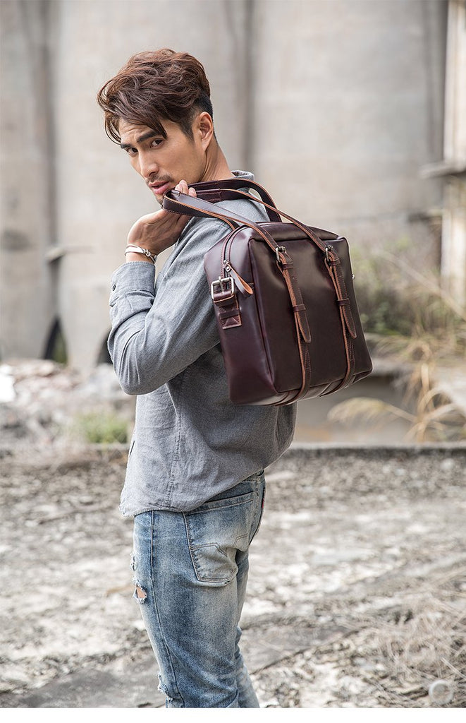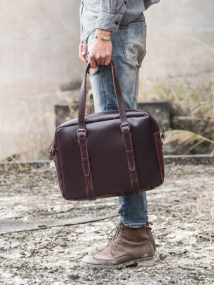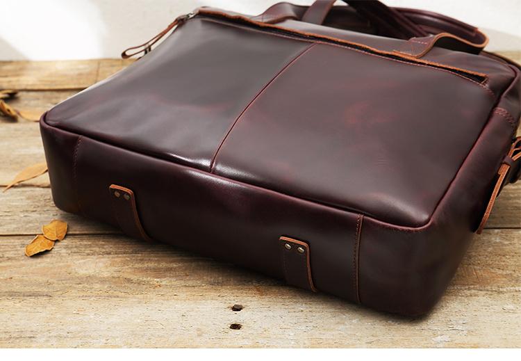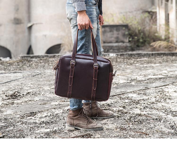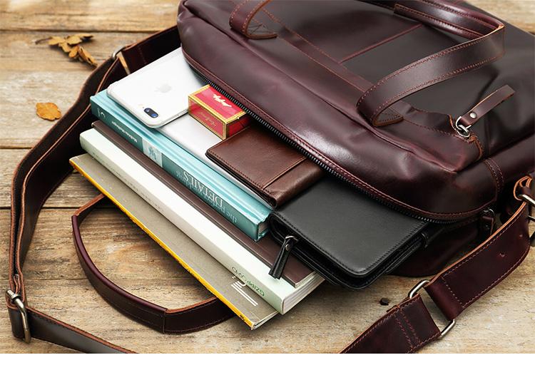 Style: Dark Brown Cool Leather Mens Large 15 inches Messenger Bags Shoulder Bags Briefcase for Men