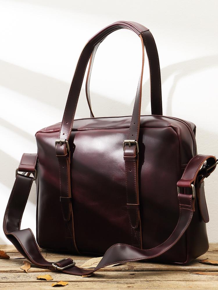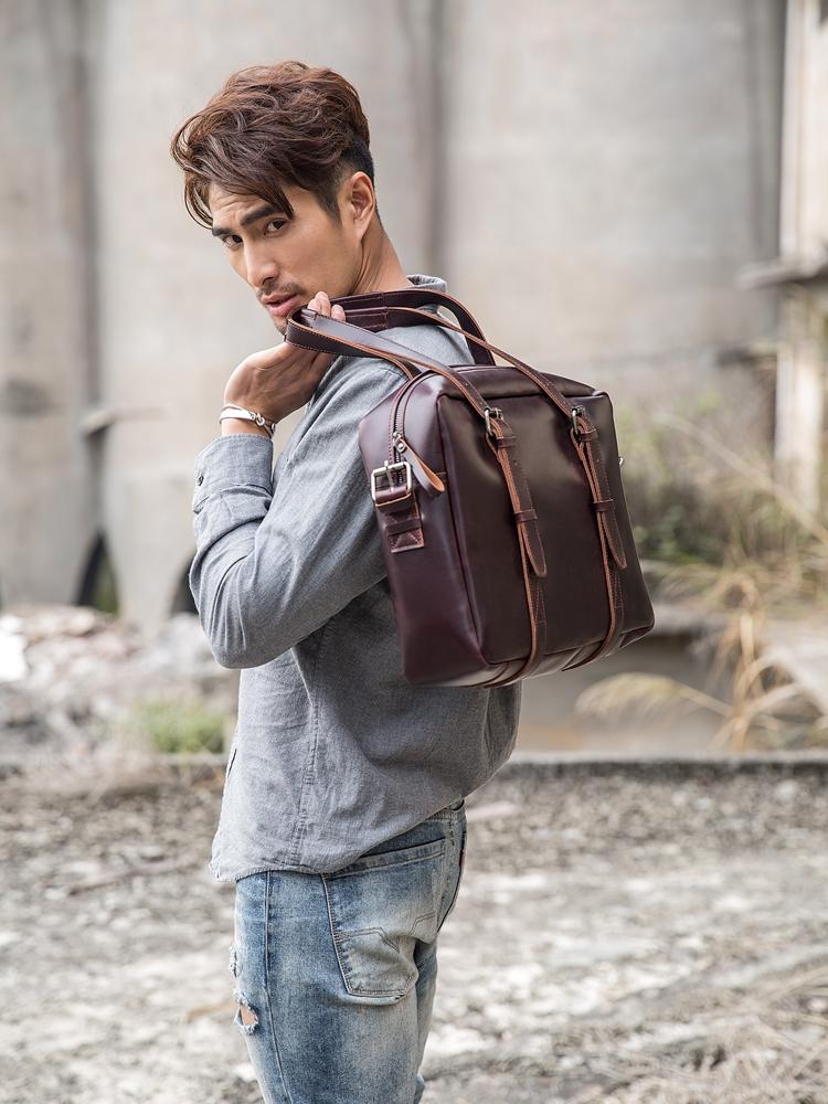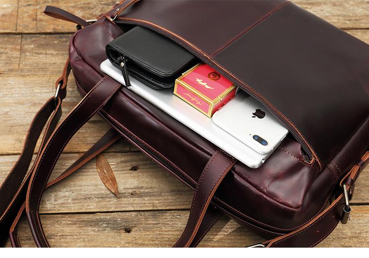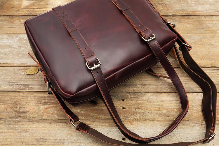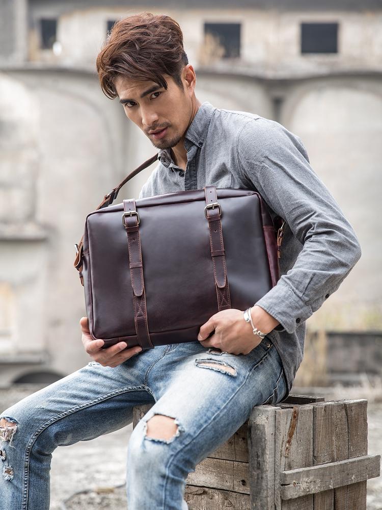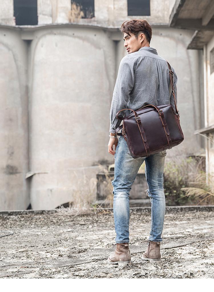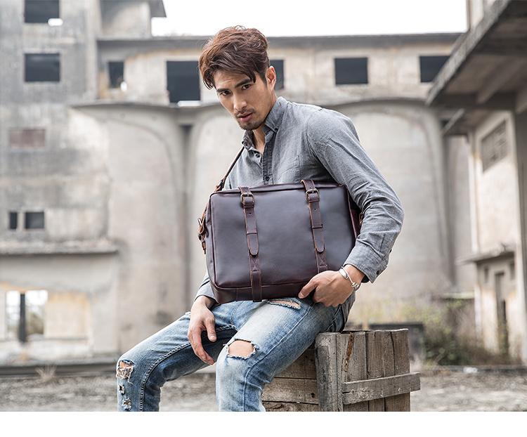 Design: Dark Brown Cool Leather Mens Large 15 inches Messenger Bags Shoulder Bags Briefcase for Men