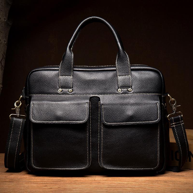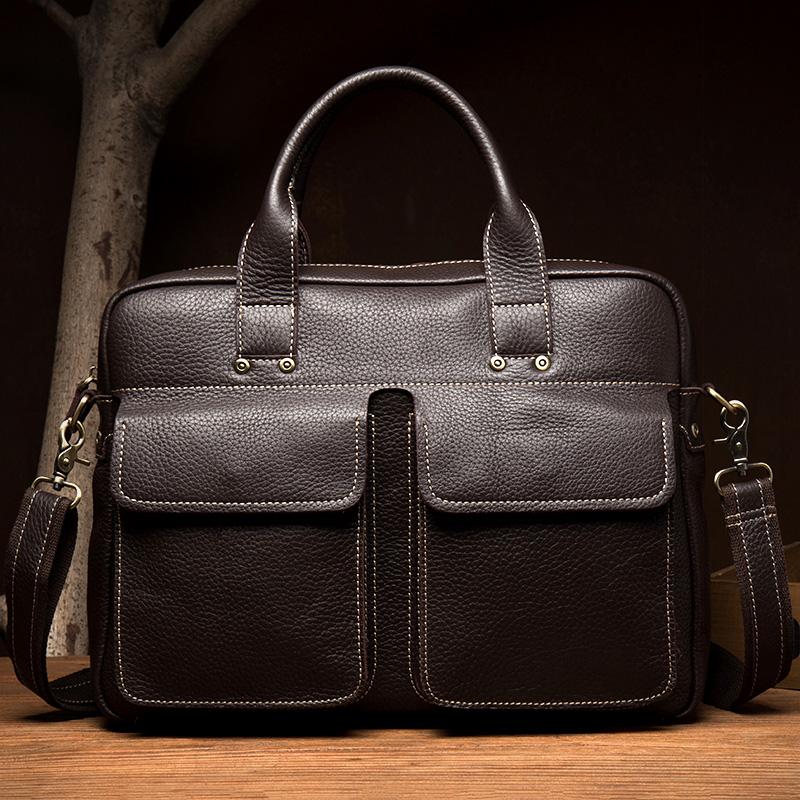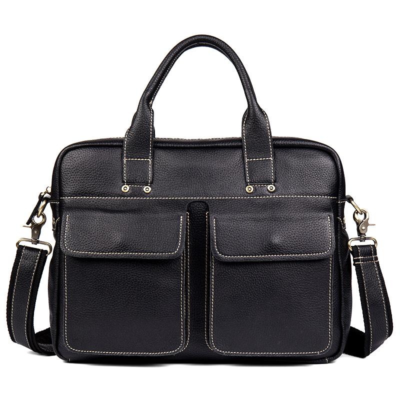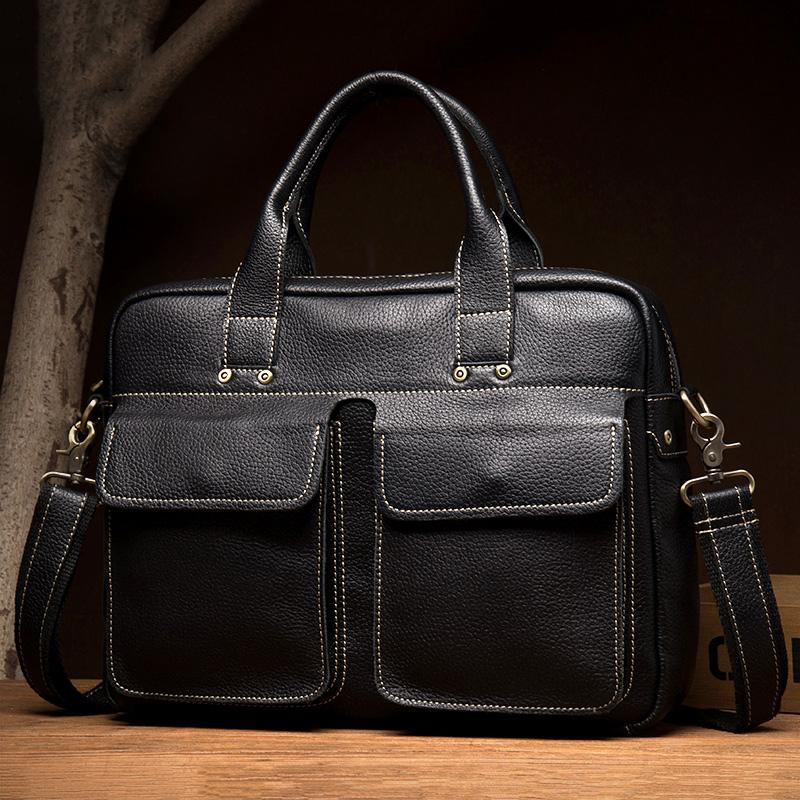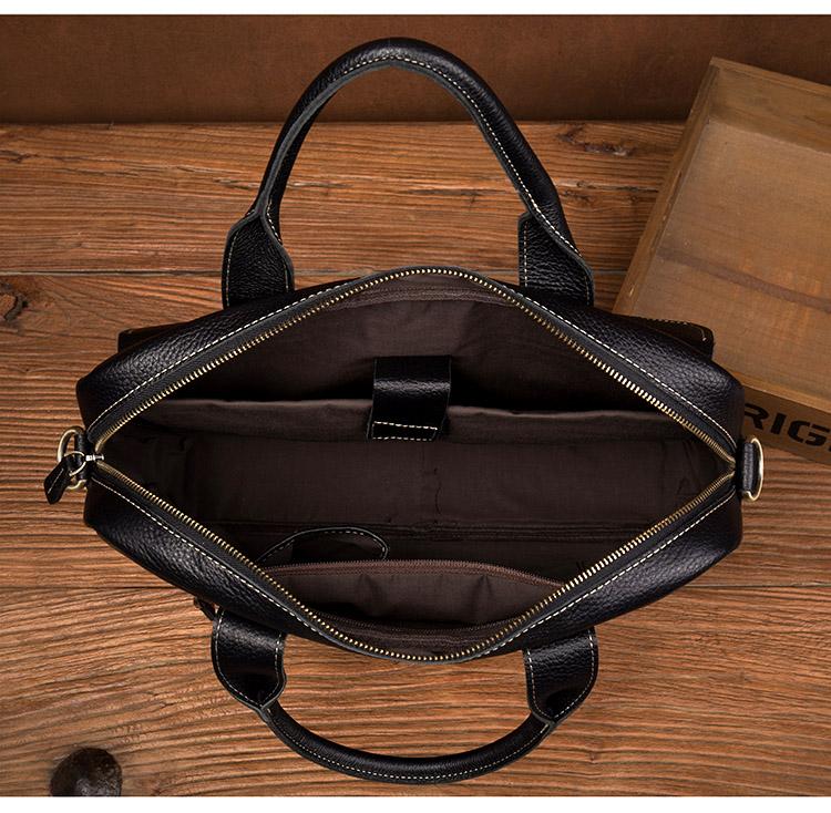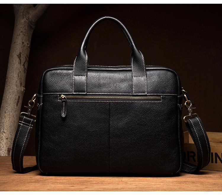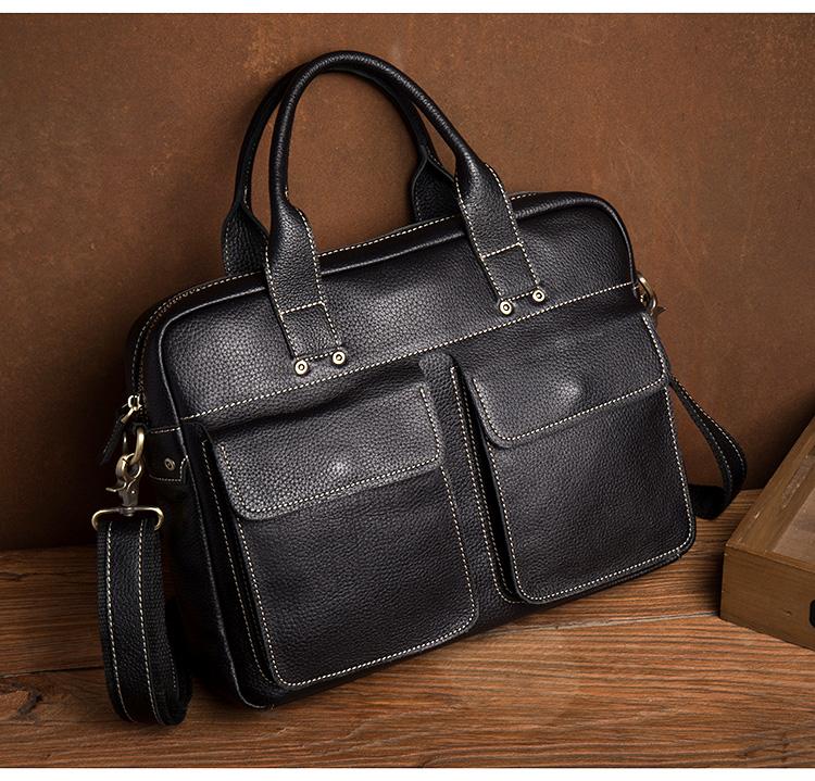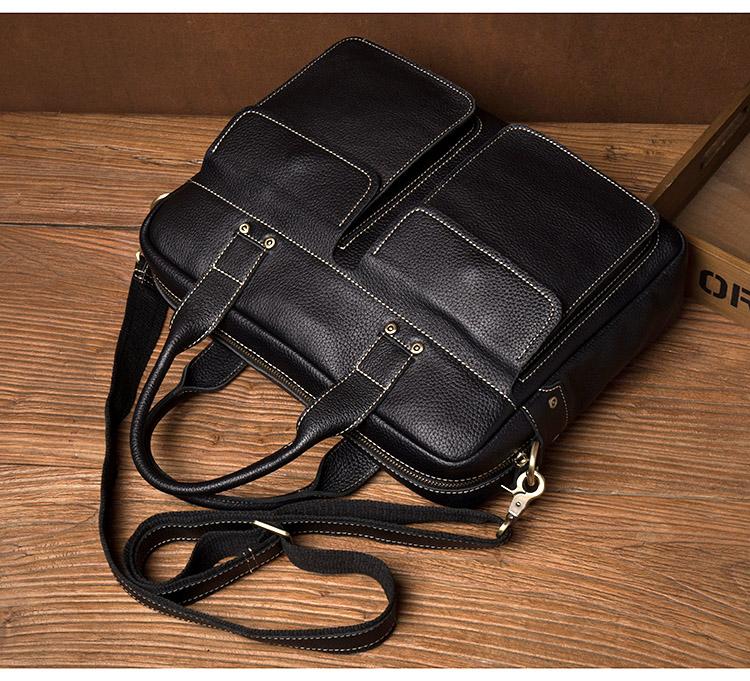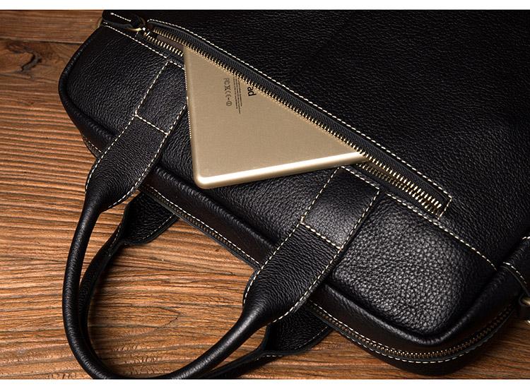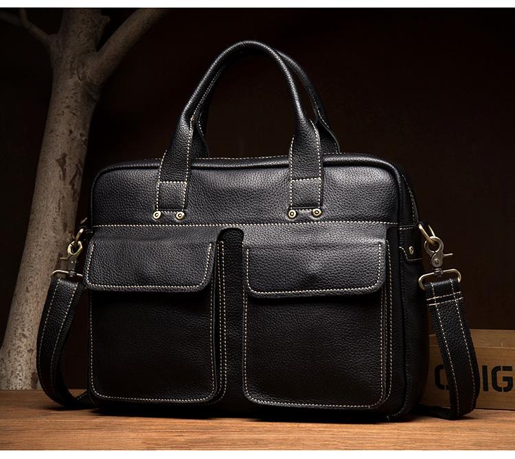 Design: Black Dark Brown Leather Mens 13 inches Briefcase Laptop Bag Business Bag Work Bag for Men
