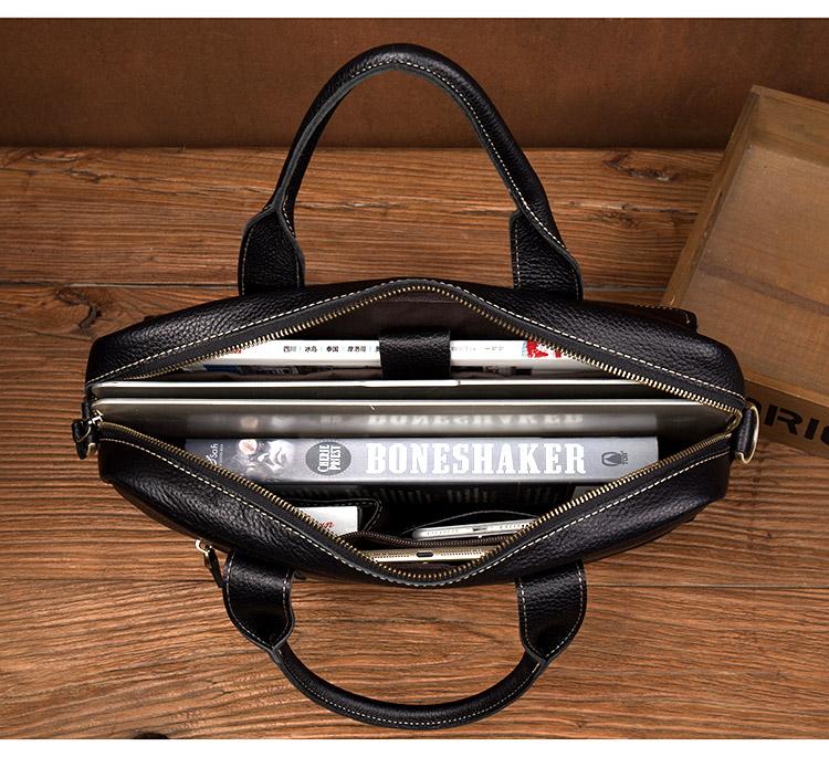 Black Leather Mens 13 inches Vertical Briefcase Laptop Shoulder Bag Coffee Business Work Bag for Men