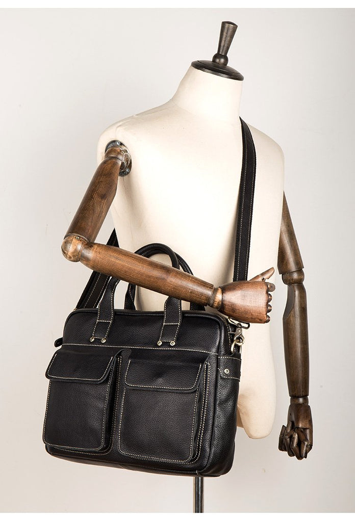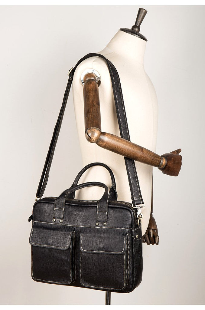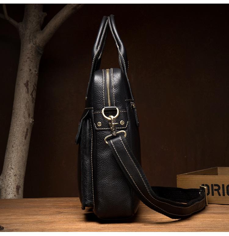 Style: Black Dark Brown Leather Mens 13 inches Briefcase Laptop Bag Business Bag Work Bag for Men