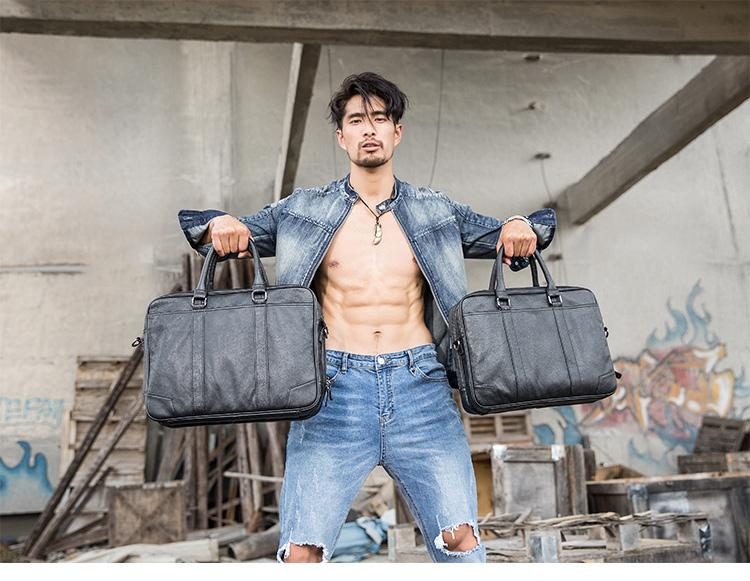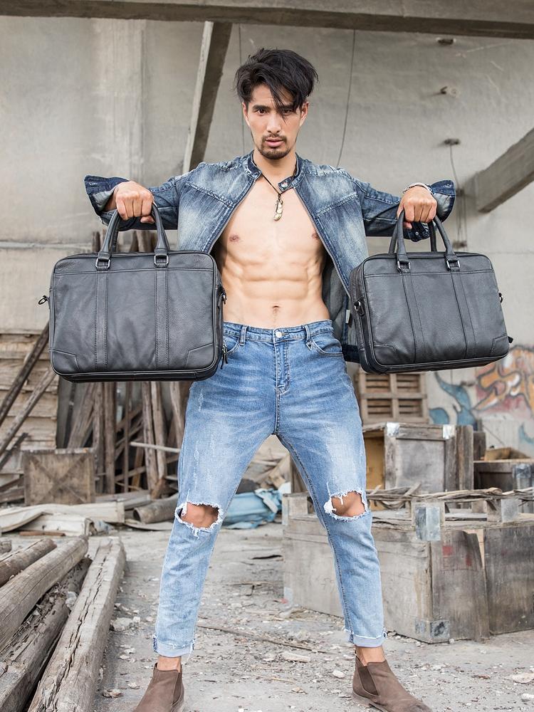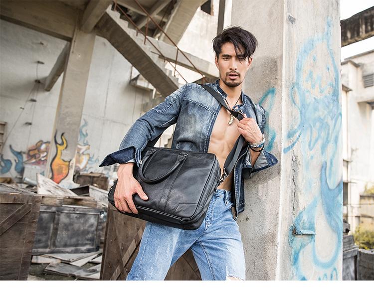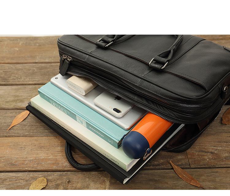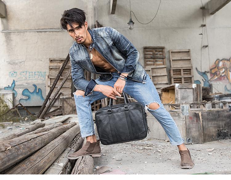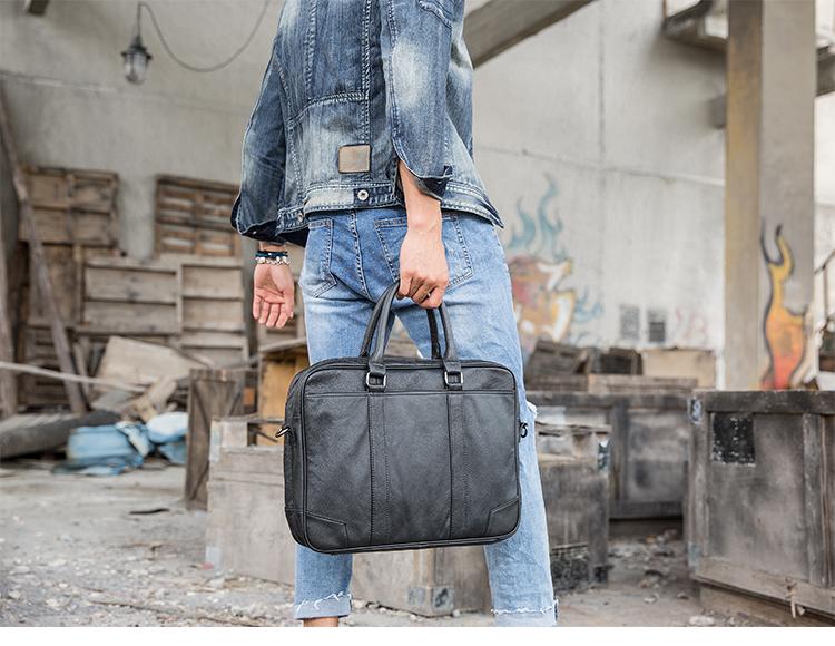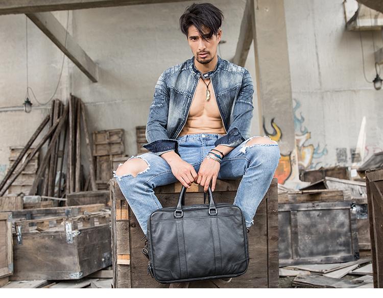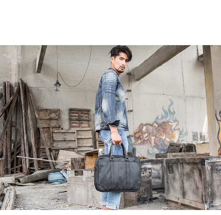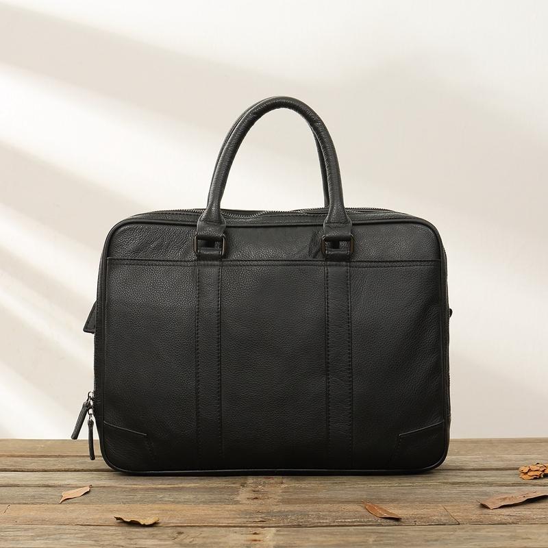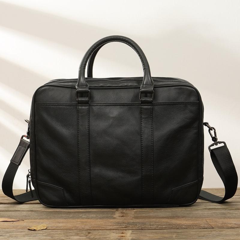 Design: Black Leather Mens 14 inches Briefcase Work Bag Laptop Bag Business Bag for Men
