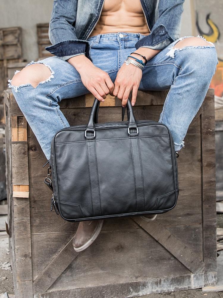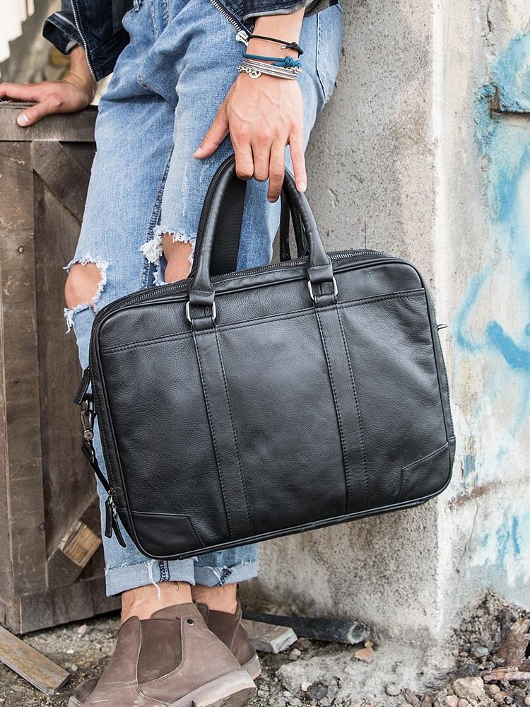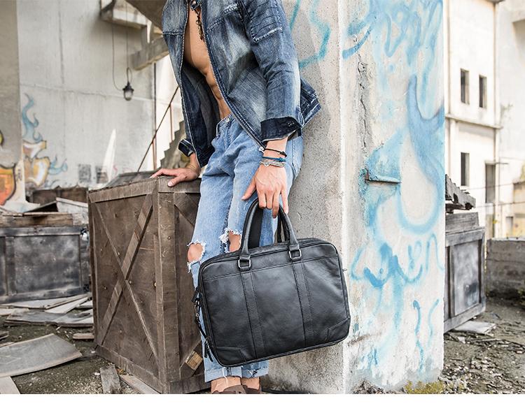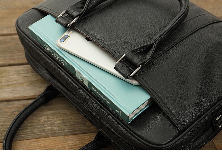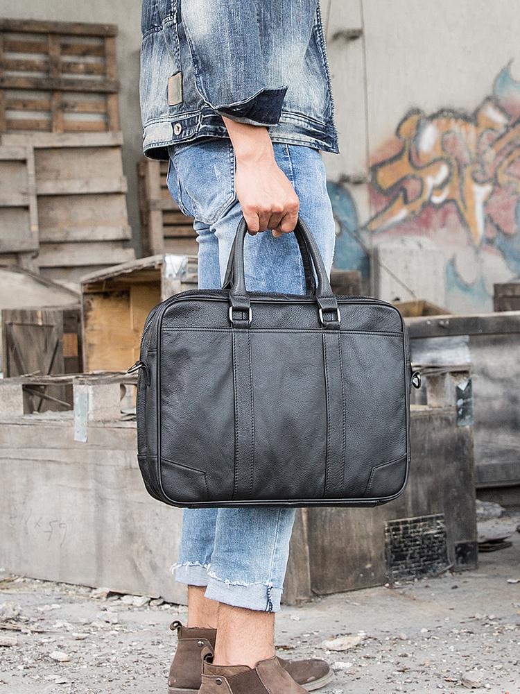 Style: Black Leather Mens 14 inches Briefcase Work Bag Laptop Bag Business Bag for Men